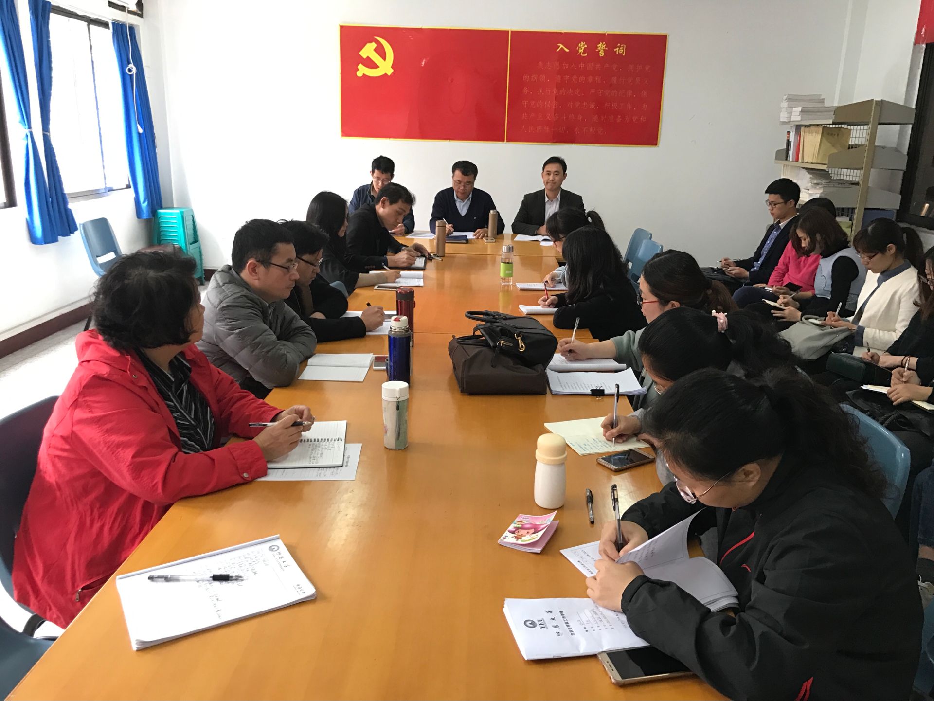 3月29日下午,太阳成官网在曼谷楼206会议室召开全体教师会议,学习和贯彻落实校第一届教职工代表大会第二次会议精神。院长翁景德,副院长庄海刚以及全院全体教师共同参加了本次会议,常务副院长兼党总支书记许惠铭同志主持会议。