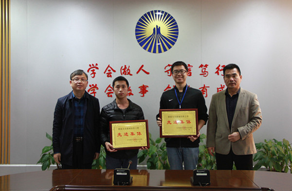 (校领导为太阳成官网颁发“先进集体”奖牌)