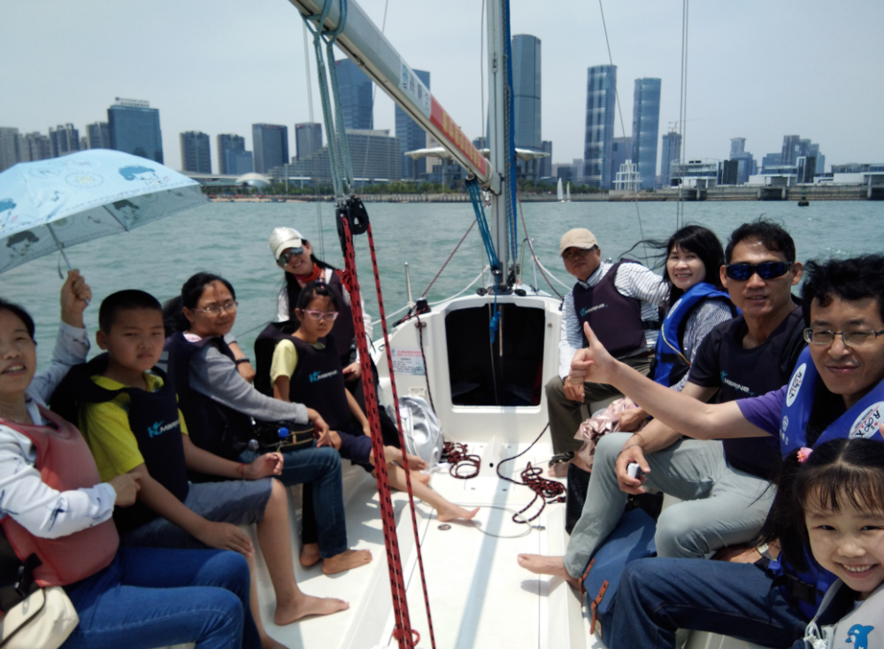 随后辗转厦门香山游艇码头,准备扬帆出海,进行帆船体验。云帆飞扬,海风扑面而来,吹拂着每个人的脸颊,“乘风破浪会有时,直挂云帆济沧海”,十分畅快和惬意。一个多小时的航行时间,途经闽南最高妈祖像、厦门本地特色建筑土屿,与厦金海域边界擦肩而过,远眺大金门、小金门,以及台湾海蛎田。天公作美,出海游玩赶上风和日丽,令人赏心悦目,老师们一边饱览海景,一边聊天拍照,其乐融融,完全忘记了疲倦。