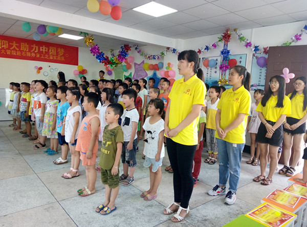 (实践队队员与孩子们表演节目)