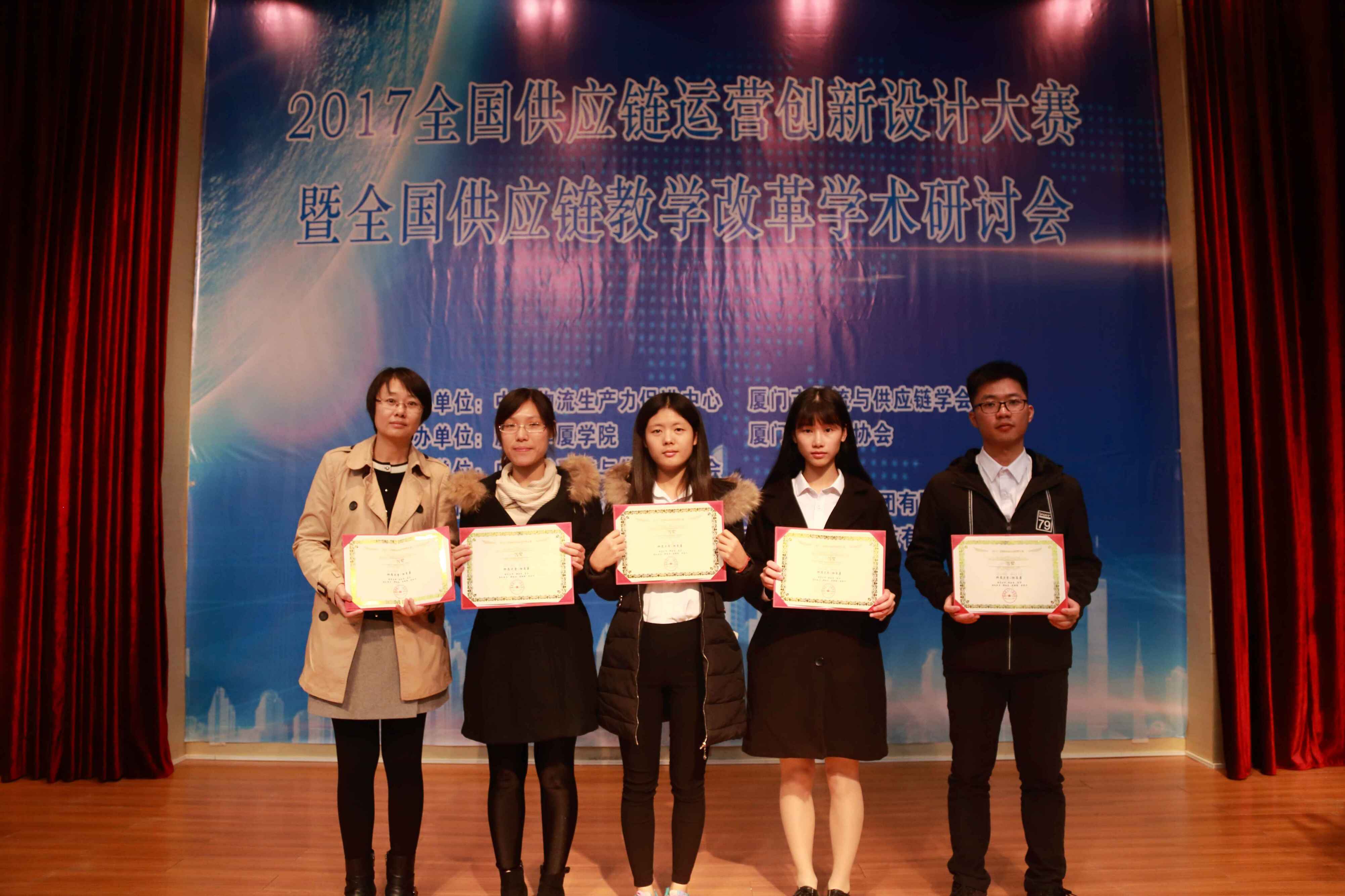 近日,由中国物流生产力促进中心、厦门市物流与供应链学会共同主办的2017全国供应链运营管理大赛在厦门市成功举办,太阳成官网由李征、郑雪清老师以及郑幼萍、曾丽娟、梁承洲同学组成的物流管理系独角兽团队从全国215所院校比赛队伍中脱颖而出,获得网赛一等奖。
