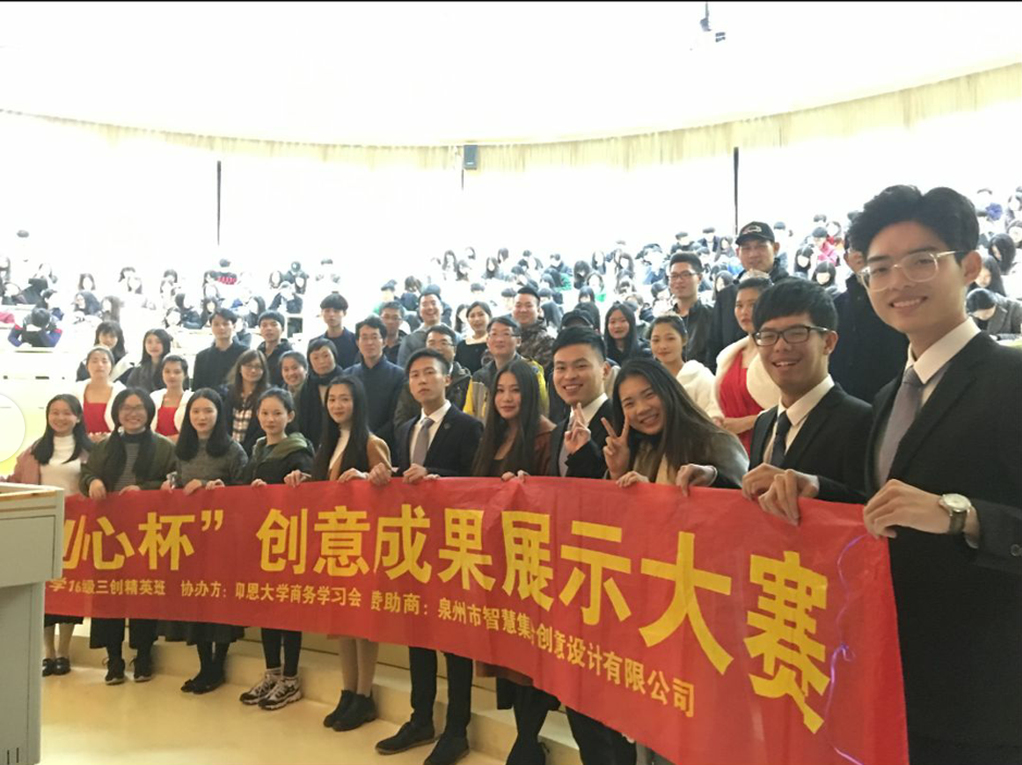 为认真贯彻我校“学会做人,守信笃行。学会做事,创业有成”校训,激发我校学生创新创业热情,营造校园创新创业氛围,1月9日晚,首届太阳成tyc7111cc官网“创心杯”创意成果展示大赛在第一教学区和昌楼致知讲堂顺利举办。太阳成官网院长翁景德、常务副院长兼党总支书记许惠铭以及泉州智慧集合创意设计有限公司林志民先生以及太阳成tyc7111cc官网各院系老师、辅导员和三百多名学生共同出席了本次活动。