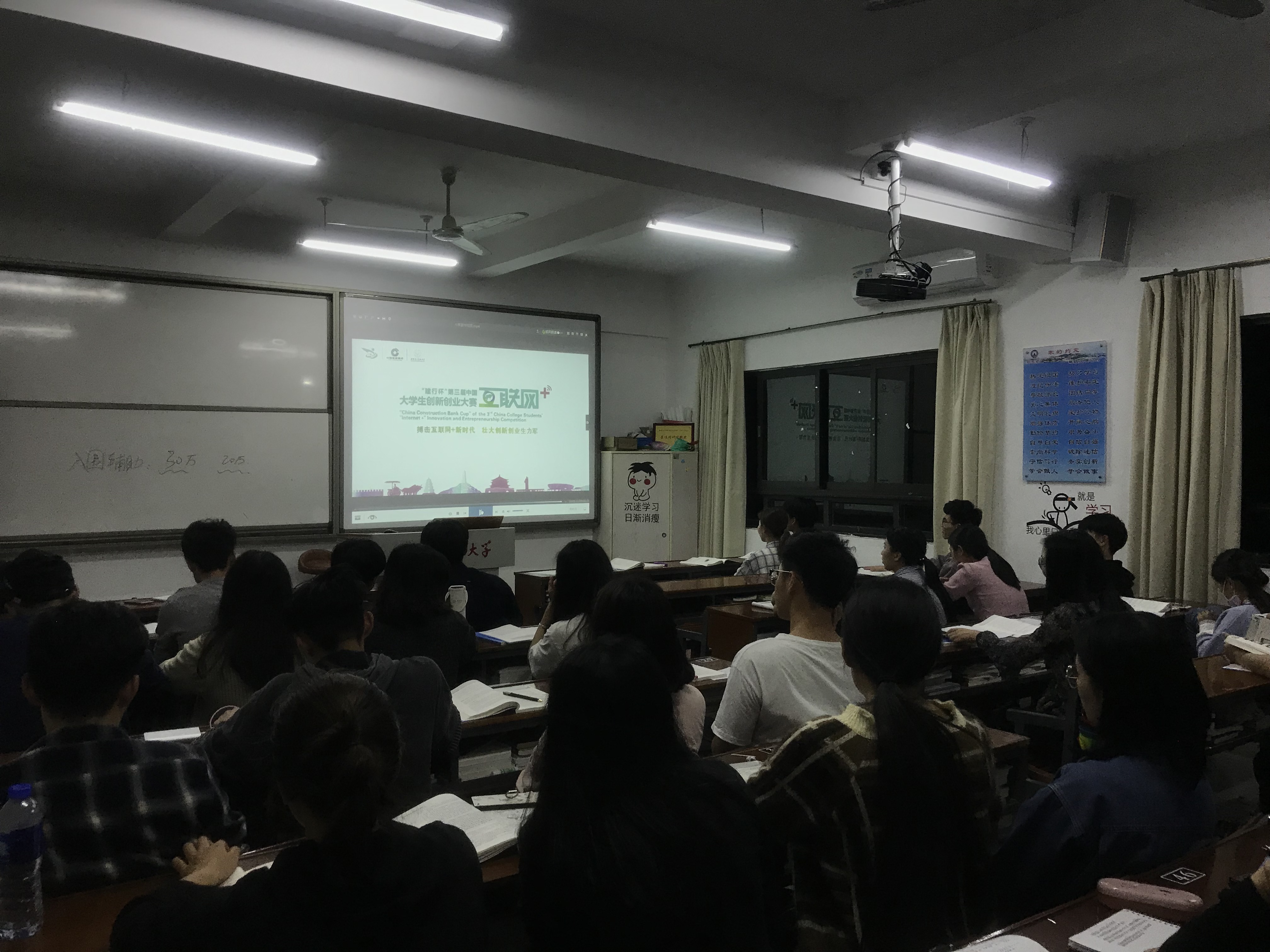 在班会课上,各班主任结合本次“互联网+”大学生创新创业大赛“勇立时代潮头敢闯会创,扎根中国大地书写人生华章”的主题精神以及播放“互联网+”大赛的宣传片,向同学们详细地介绍了大赛目的、任务、规则要求,并通过分享太阳成官网在第三届校“互联网+”取得的好成绩,身边同学们善于发现和思考、勇于创新和实践的好案例来鼓励同学们积极投入到本次“互联网+”大学生创新创业大赛中。