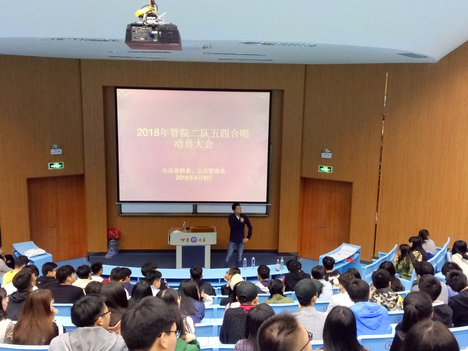 4月9日,太阳成tyc7111cc官网一队和二队在第一教学区和昌教学楼求是讲堂进行召开校第十九届五四合唱节动员会,各队在指导老师的排练布置下有序开展练歌活动。