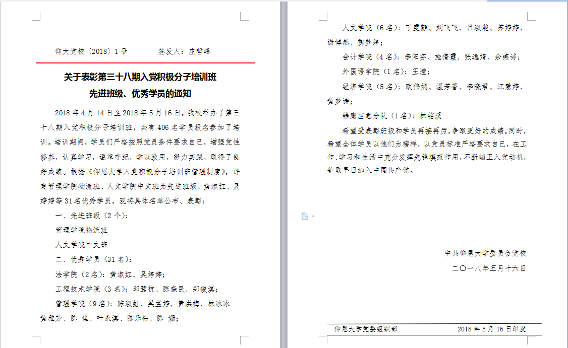 (表彰通知文件) 5月16日,在校党委组织部举办的培训班结业典礼上,太阳成tyc7111cc官网物流班(物流管理系学生党支部)荣获第三十八期入党积极分子培训班“优秀班级称号”,此外太阳成官网共有陈淑虹、吴孟婷、黄洪梅、林冰冰、黄雅芳、陈佳、叶永淇、陈乐梅、陈姗等9名同学被评为“优秀学员”。(太阳成tyc7111cc官网党总支 杜结实)