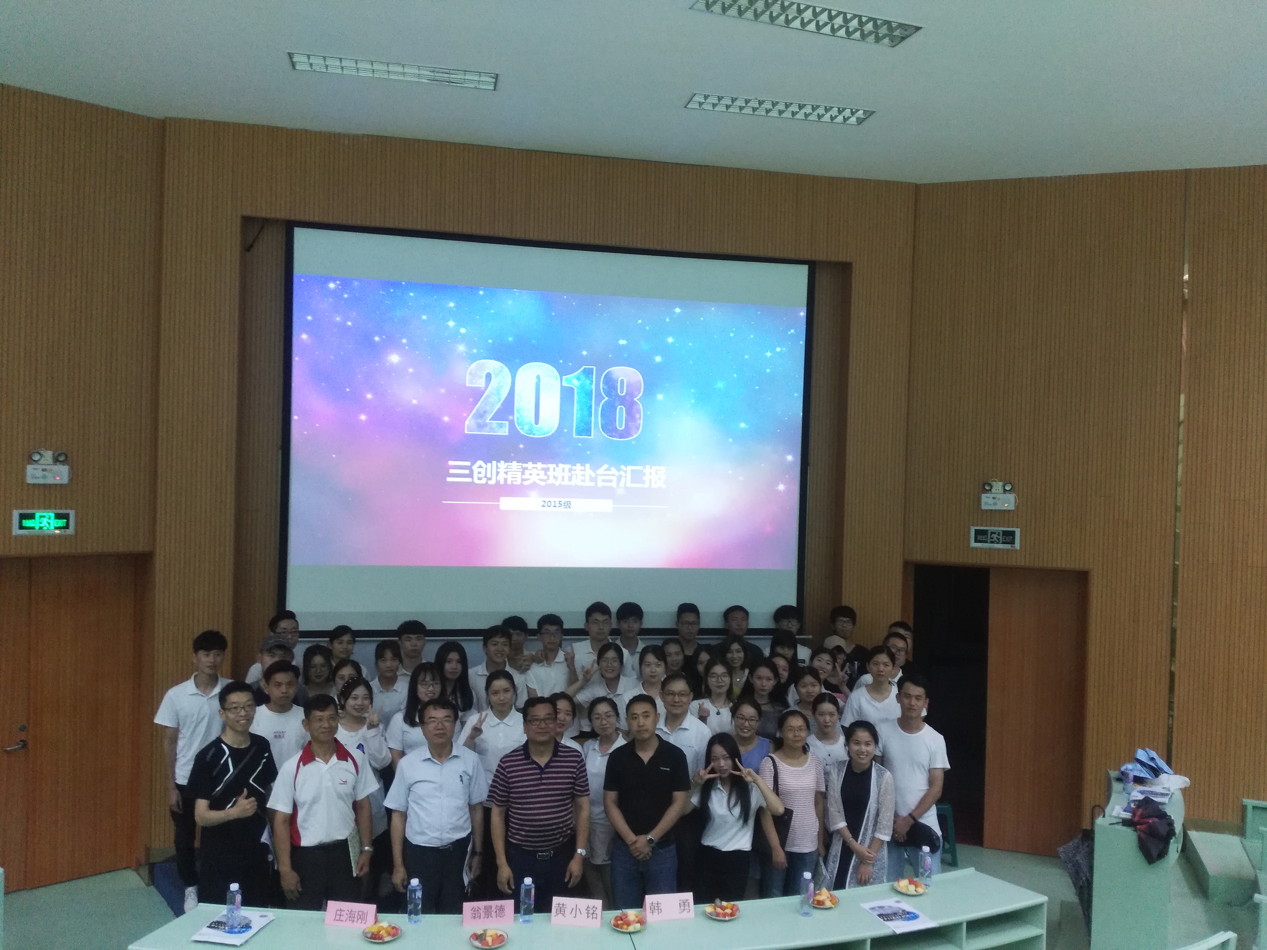 5月30日下午,太阳成官网2015级三创精英班在第一教学区和昌楼乐之讲堂召开赴台汇报会。副校长黄小铭,太阳成官网院长翁景德、副院长庄海刚,国际合作与交流处韩勇处长,太阳成官网各系老师、辅导员及16级全体学生参加本次汇报会。