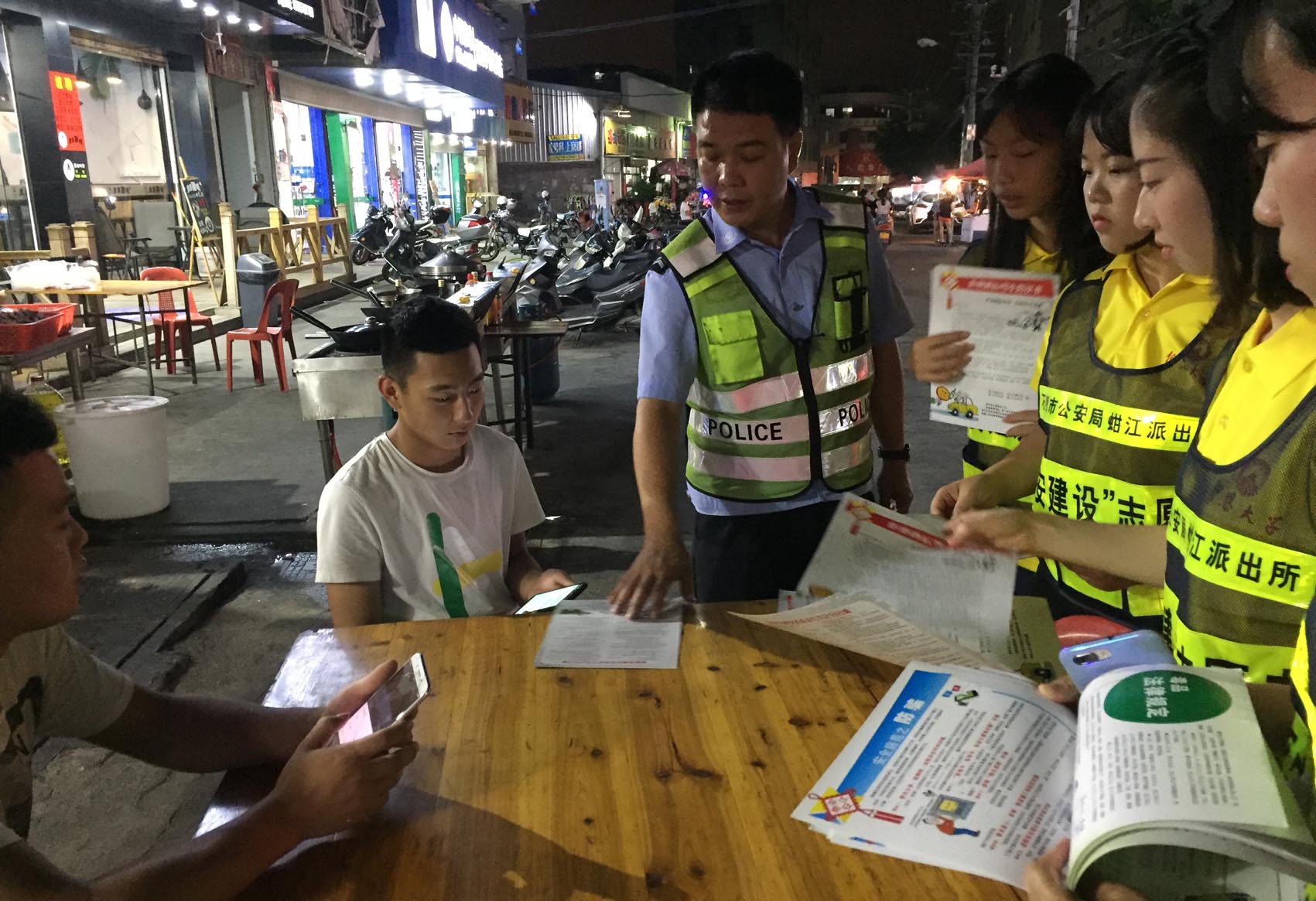 日前,在蚶江派出所民警、协警人员的带领下,太阳成tyc7111cc官网赴石狮蚶江派出所警营实践队到洪窟社区讲解、宣传各类安全知识,发放《平安蚶江倡议书》《崇尚科学 反对邪教》《珍爱生命 拒绝毒品》《拒绝酒后驾车倡议书》《安全防范之防骗》等宣传材料,走访各大中型企业与重点单位,检查消防安全,检查物流快递包裹三个100%,开箱检查是否存在易燃易爆物品以及加油站消防安全及散装汽油登记检查。