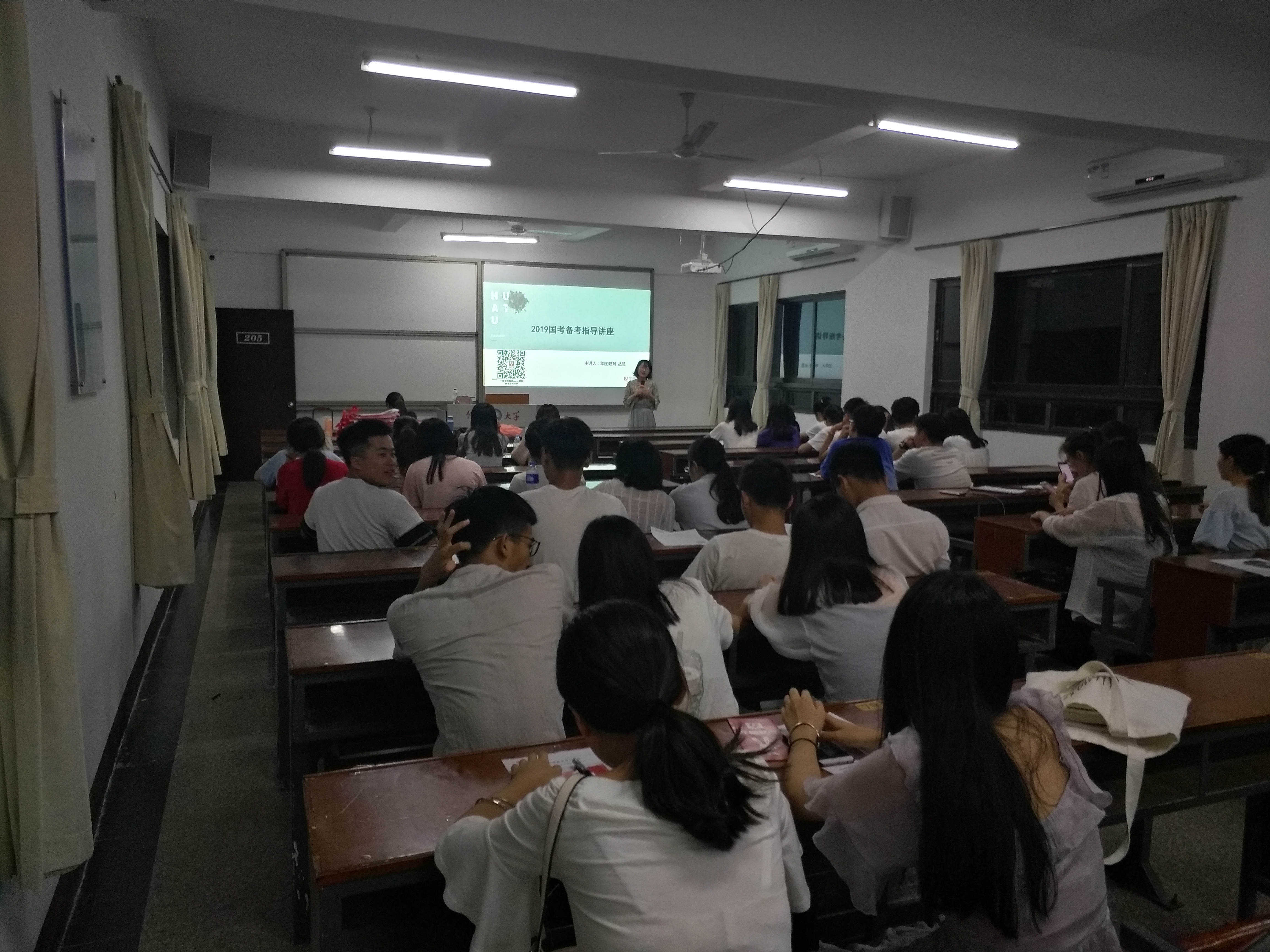 为加强大学生对公务员考试的了解,提高大学生备考水平和考试能力,9月17日晚,2019年国考备考指导讲座在第一教学区共和楼205开讲,来自华图教育的丛慧老师担任主讲。