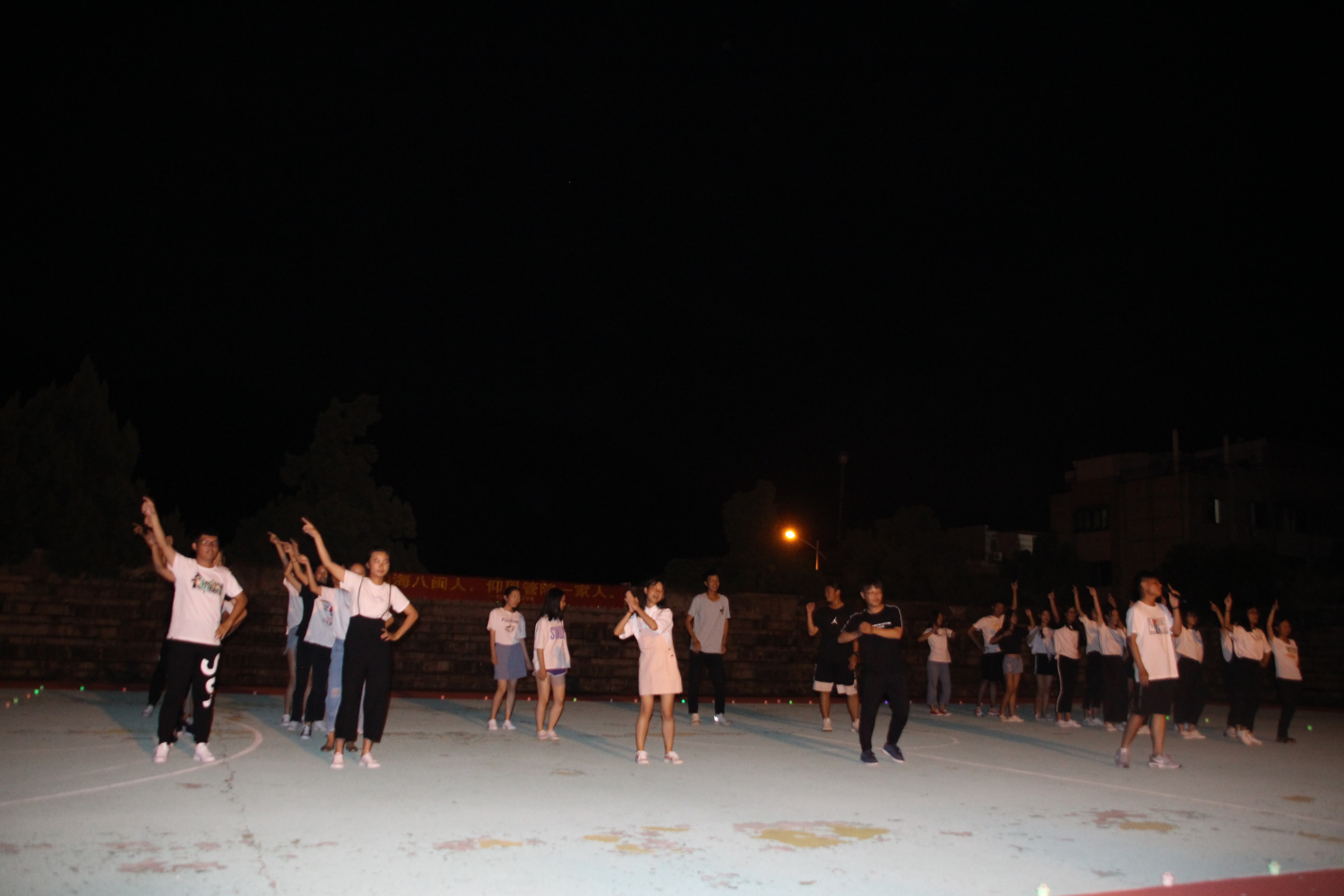 晚会现场 晚会在2018级新生军训主题演讲比赛学院初赛的颁奖仪式中拉开序幕。来自舞协的开场瞬间点燃全场,歌曲《卡路里》、《父亲写的散文诗》、街舞《Uptown》等也是精彩纷呈,由军训教官们倾情献唱的《强军战歌》将晚会推至高潮。期间穿插跳大绳、指压板等互动游戏,更是令全场沸腾。