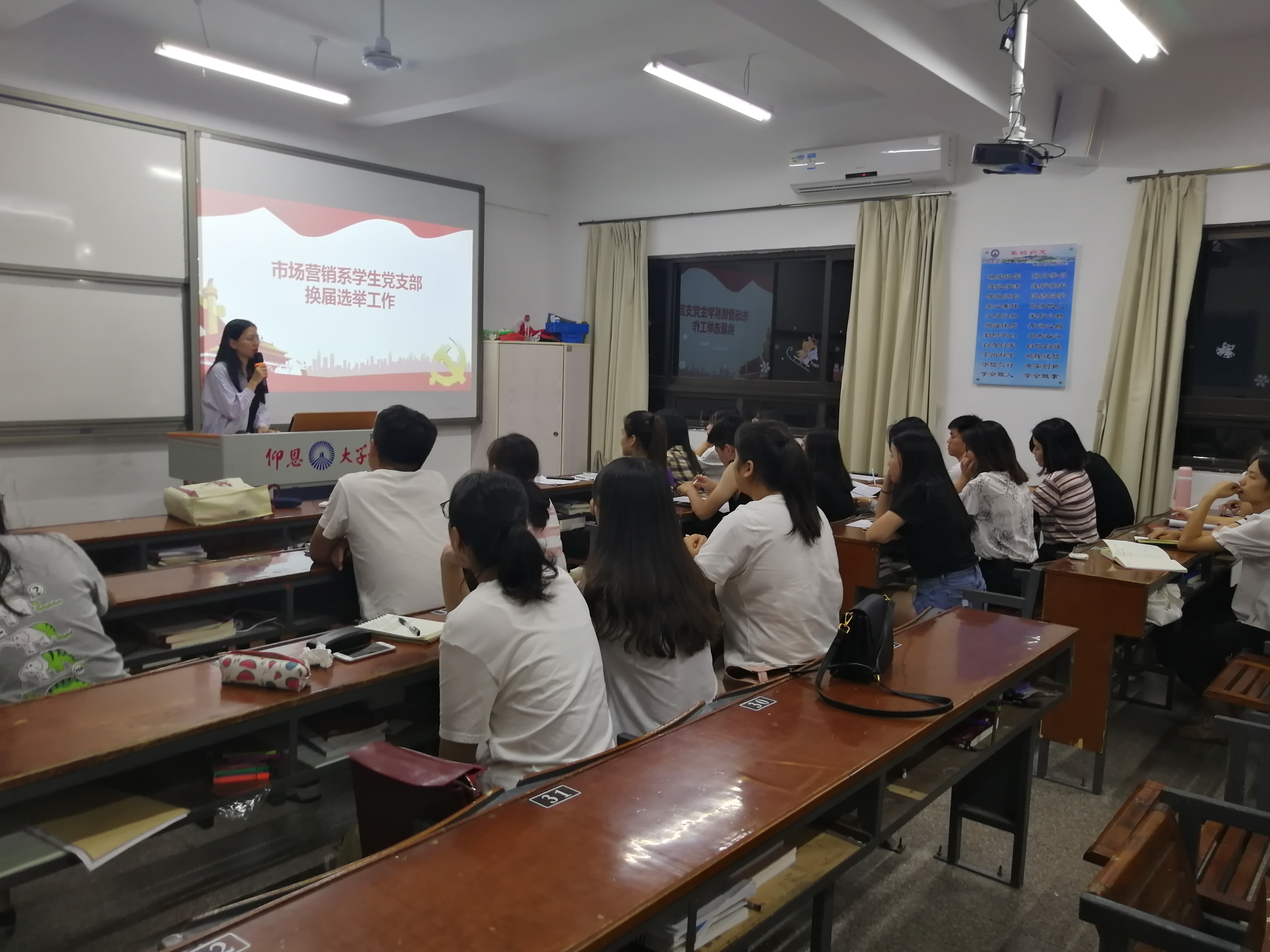 9月27日晚上7点,市场营销系学生党支部在共和楼411教室召开党支部换届大会,参加本次换届大会的有市场营销系学生党支部书记连景霞老师、市场营销系学生党支部全体党员以及17级积极分子,本次大会由李陈蕊同志主持。