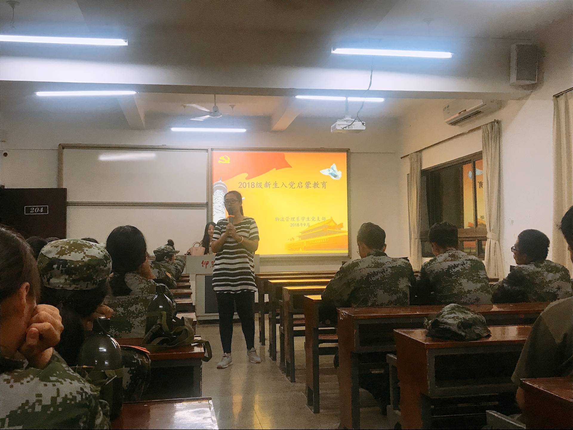 为了让2018级新生正确看待入党问题,端正入党动机,详细了解入党流程, 9月27日晚上,物流管理系学生党支部在共和楼204举办了2018级新生入党启蒙教育讲座。