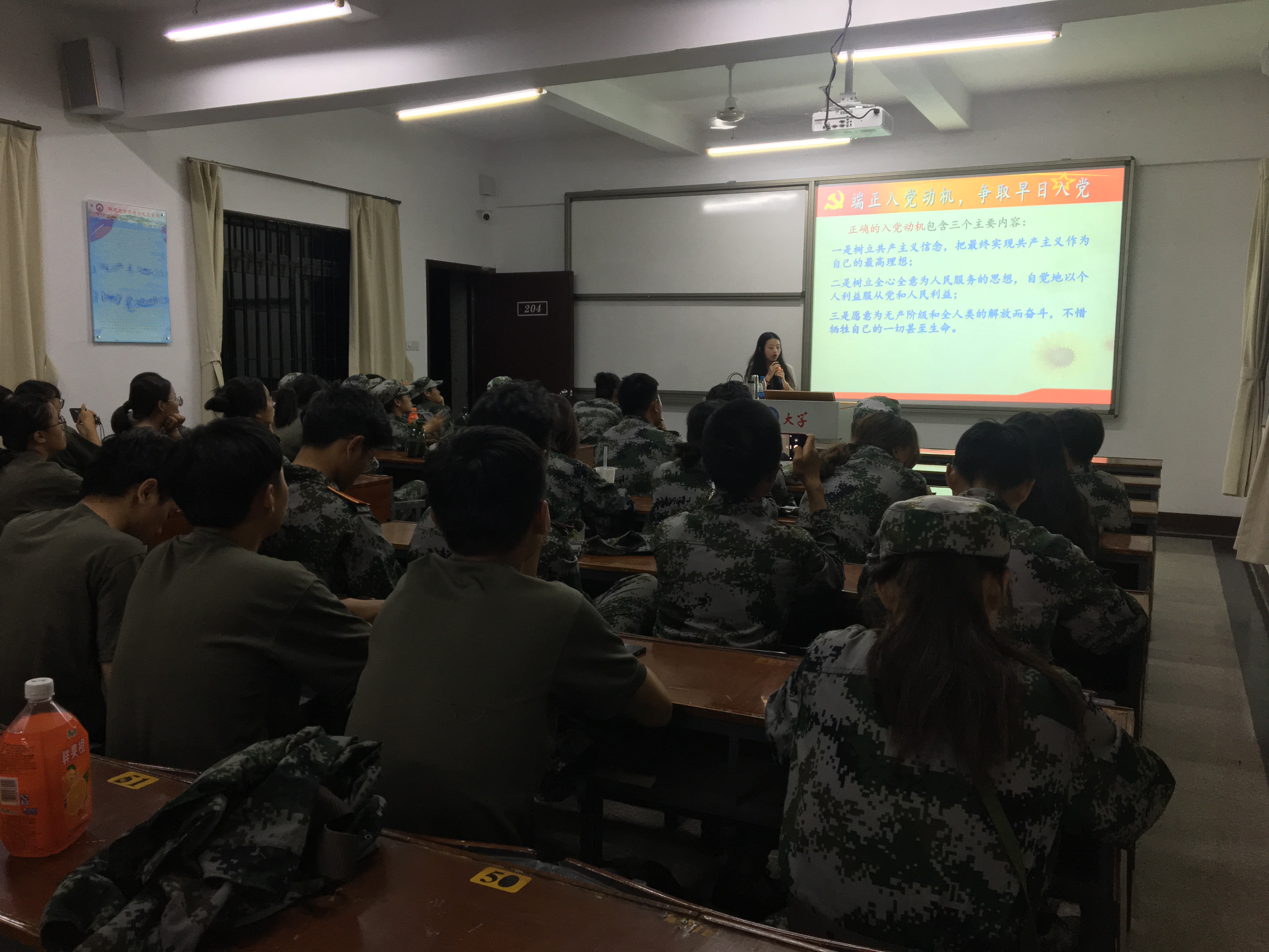 李诗烽同学担任启蒙教育主讲 入党启蒙教育由李诗烽担任主讲,她主要通过PPT幻灯片播放的形式结合个人实际,分别从分析党章说明共产党员所具备的条件、树立党员形象、端正入党动机、入党流程、发展党员工作细则等方面为新生作全面介绍。使同学们正确认识党,明确党的宗旨,摆正入党态度。会后同学们争先恐后请教有关入党的注意事项和要求,表现出对入党的极大热情与期望。