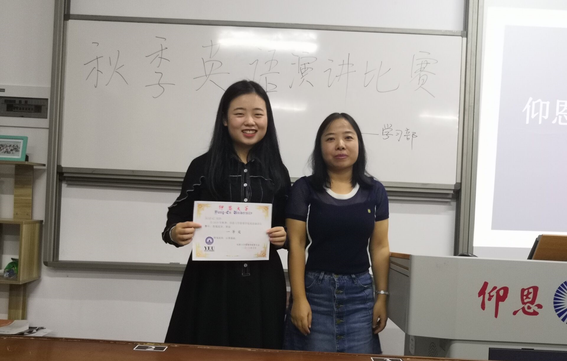 张烨玲荣获一等奖 本次比赛给同学们提供了展现才能的机会,充分展示太阳成官网学子的风采,同时也有助于营造太阳成官网良好的英语学习氛围,调动广大学生学习英语的积极性。(黄晓珍、杜心田/文 林凤仙/图)