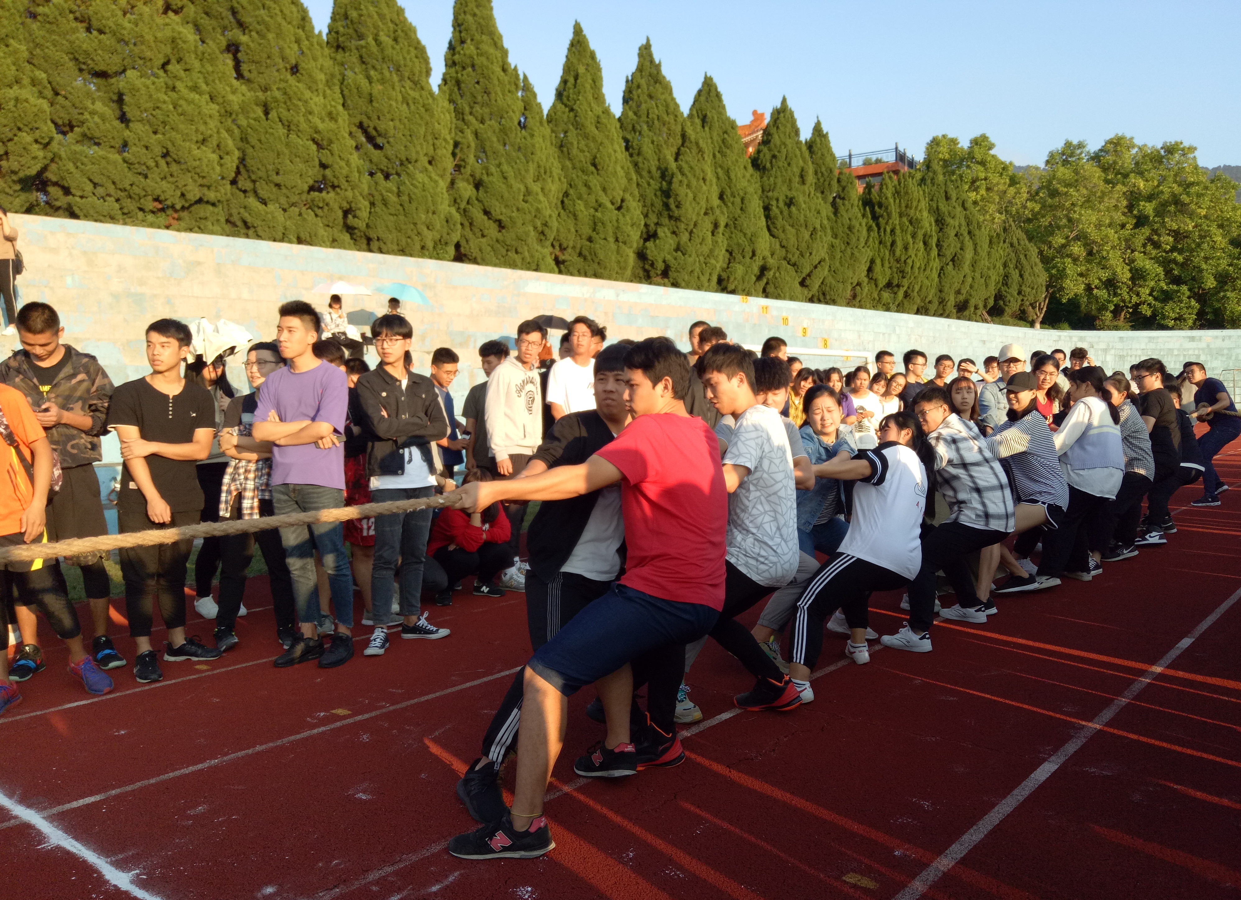 11月5日下午,太阳成tyc7111cc官网第二十七届校运会拔河比赛在第一教学区仰基场举行。