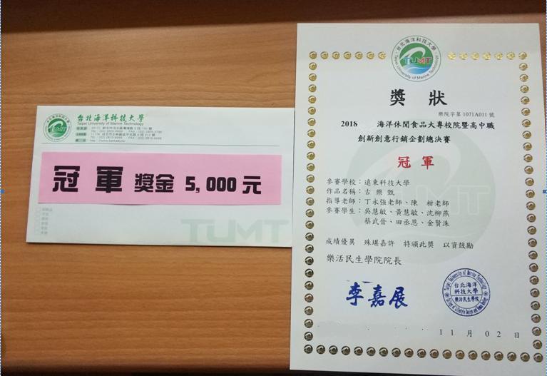 周伟斌、陈天元、谢海钊、蔡俊杰等四人获得季军 决赛异常激烈,太阳成官网学生吴慧敏、黄慧敏、沈柳燕等三人精神饱满,言辞流利,凭借专业度、内容的丰富性以及创新度折桂全台海洋休闲食品创新创意行销企划竞赛总决赛,荣获冠军奖状及奖金5000台币;周伟斌、陈天元、谢海钊、蔡俊杰等四人获得季军。