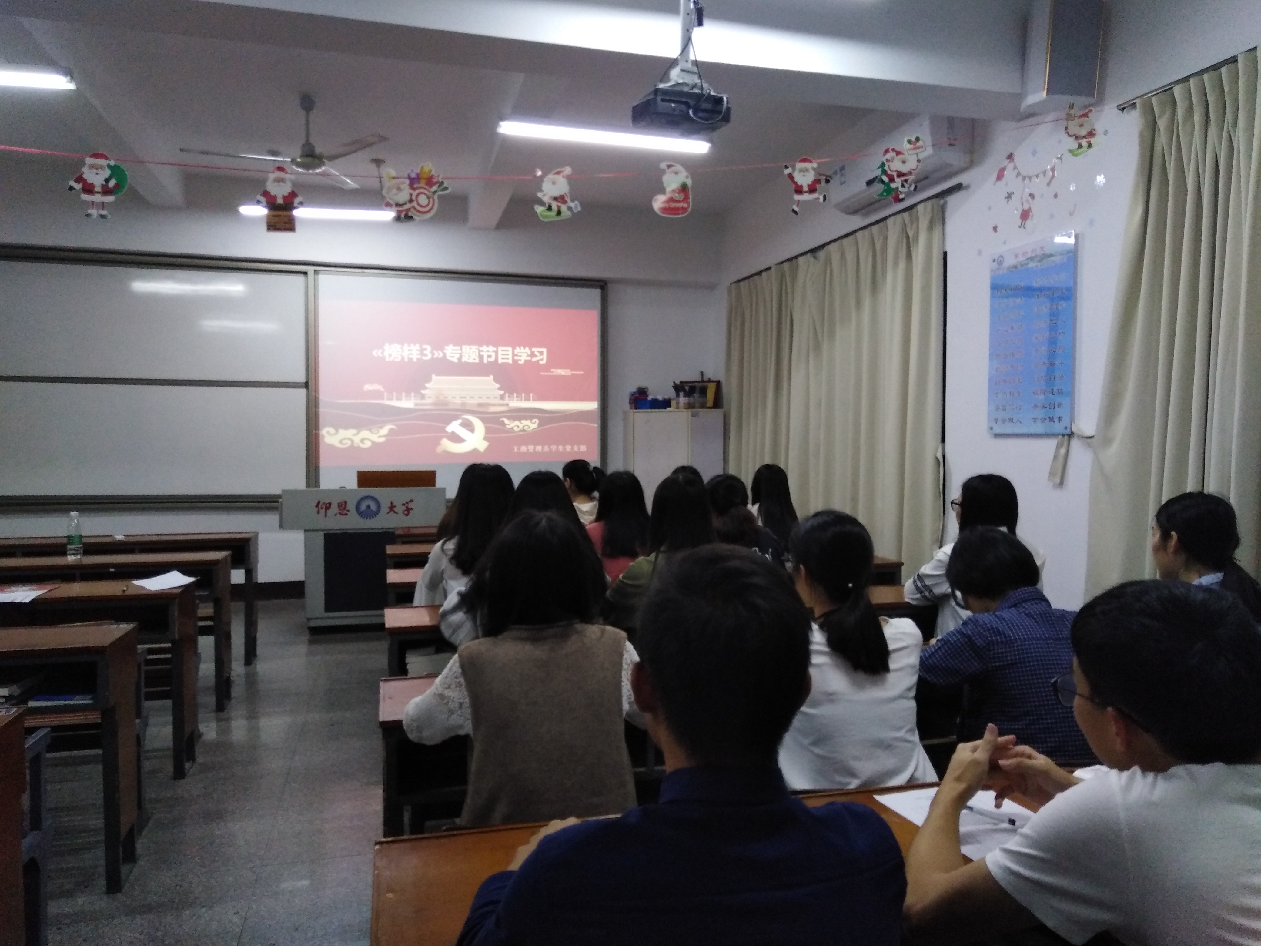 为深入学习贯彻习近平新时代中国特色社会主义思想和党的十九大精神,深入推进“两学一做”学习教育常态化制度化,为开展“不忘初心、牢记使命”主题教育营造氛围,树立优秀共产党员楷模,发挥先进典型示范作用,11月10日,工商管理系学生党支部于共和楼316组织党员观看了中央组织部、中央广播电视总台联合录制的反映优秀共产党员和先进基层党组织典型事迹的专题节目《榜样3》。