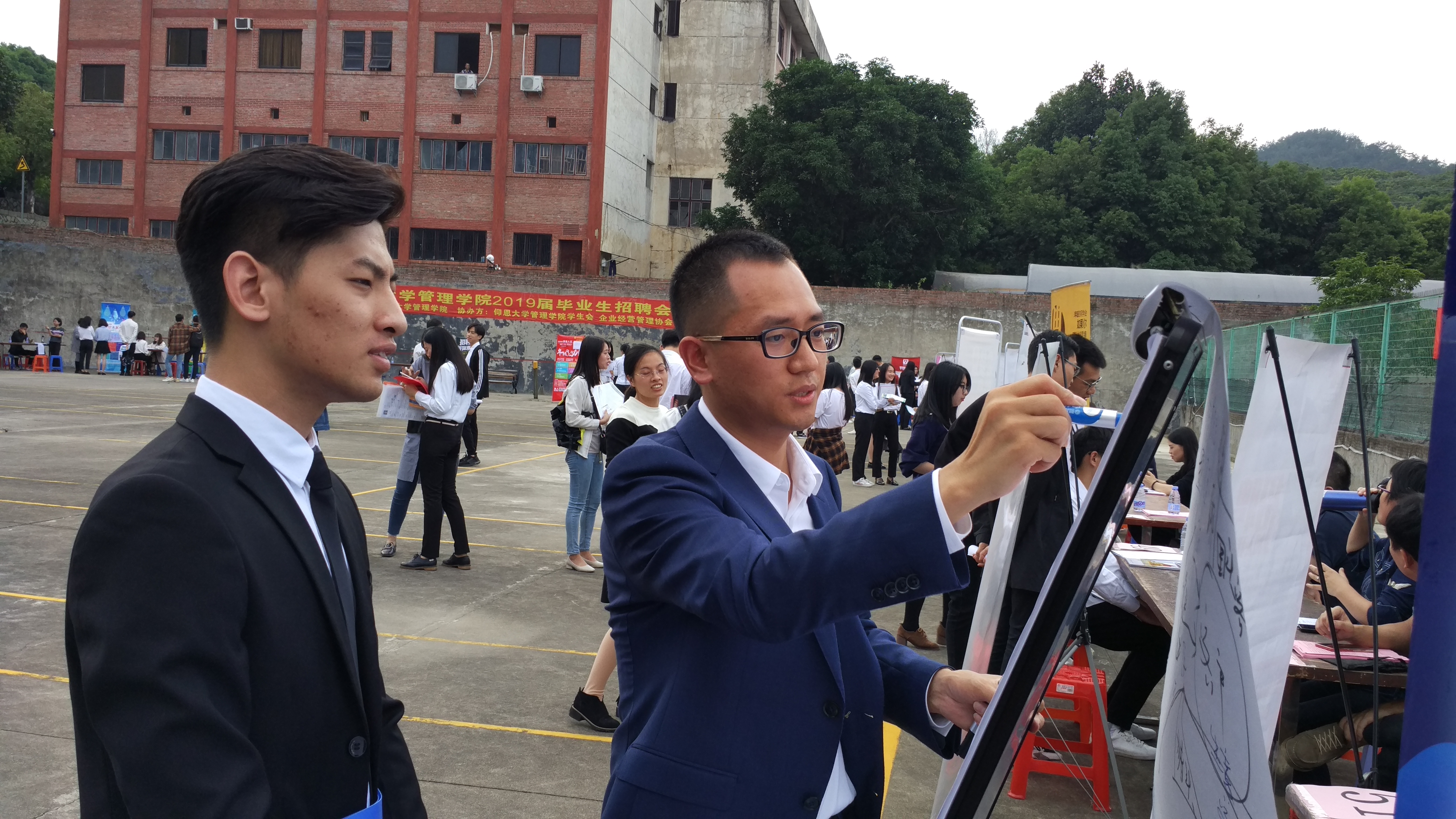 11月21日下午,太阳成官网在第一教学区网球场举办2019届毕业生专场招聘会。学生事务部主任吴胜潮、太阳成tyc7111cc官网党总支书记兼常务副院长许惠铭、就业指导与服务中心主任朱玉华等亲临现场指导并与学生亲切交流。