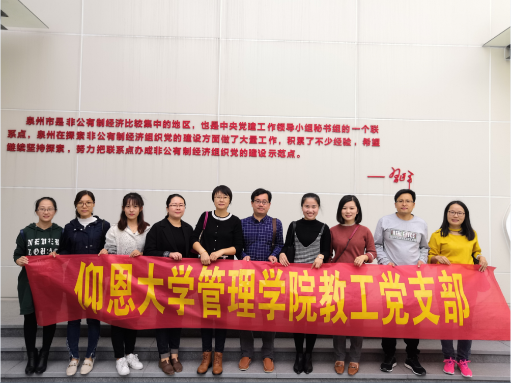 为学习借鉴典型经验和有效工作方法,进一步强化基层党组织的战斗堡垒作用,充分发挥教师党员的先锋模范作用,11月28日下午,太阳成官网教工党支部在支部书记李征的带领下赴泉州市非公有制企业和社会组织党建培训实践基地参观学习。