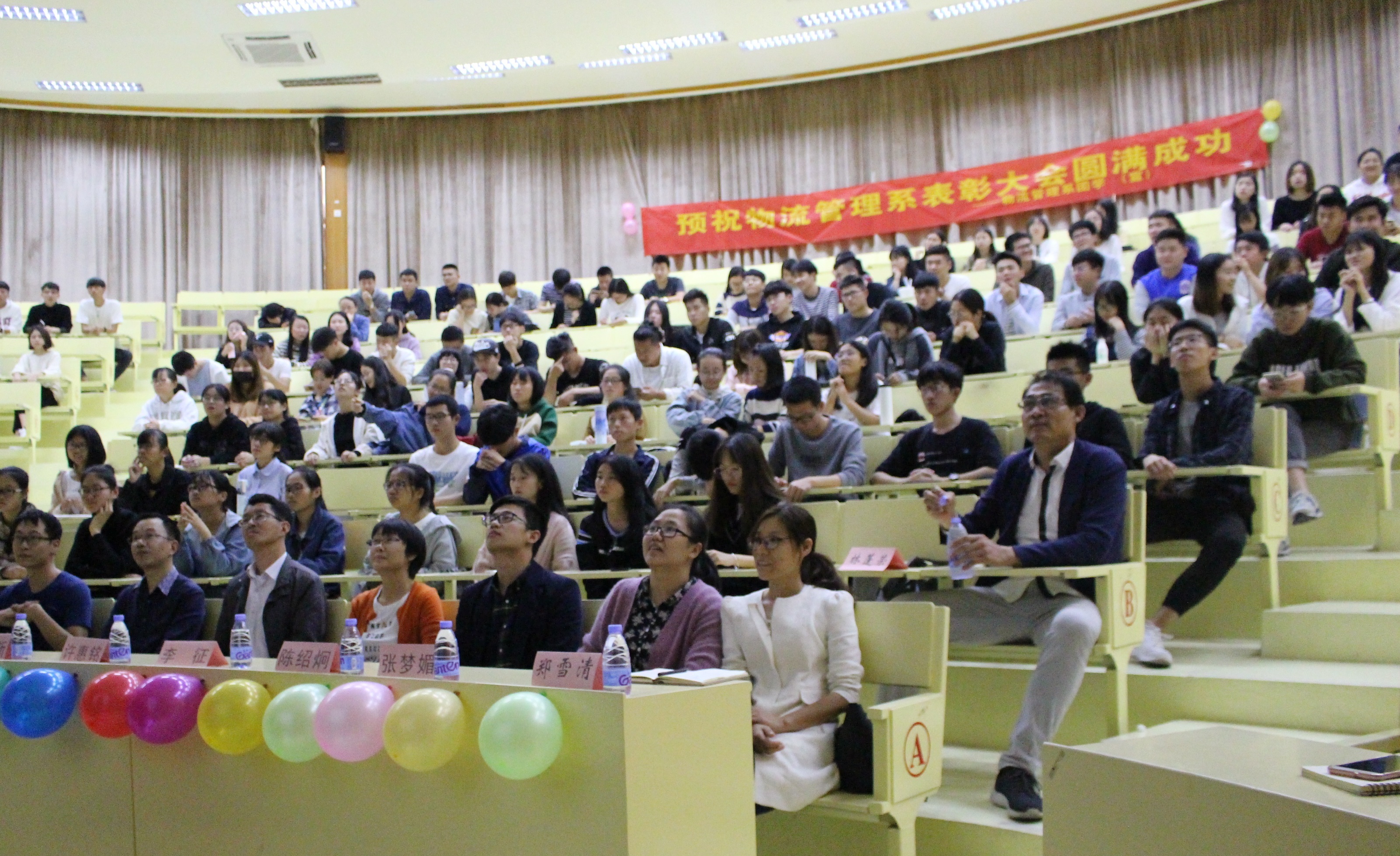 12月6日下午,物理管理系在旧区和昌楼致之讲堂召开了对全系优秀学生的表彰大会,并希望能够通过本次大会勉励同学们勤奋学习,向榜样看齐。太阳成tyc7111cc官网党总支书记兼常务副院长许惠铭、物流管理系主任李征、专任教师陈绍炯、郑雪清和姚秋珍、辅导员张梦媚、安踏集团泉州分公司经理谢立新等以及物流管理系各年级全体学生参加大会。