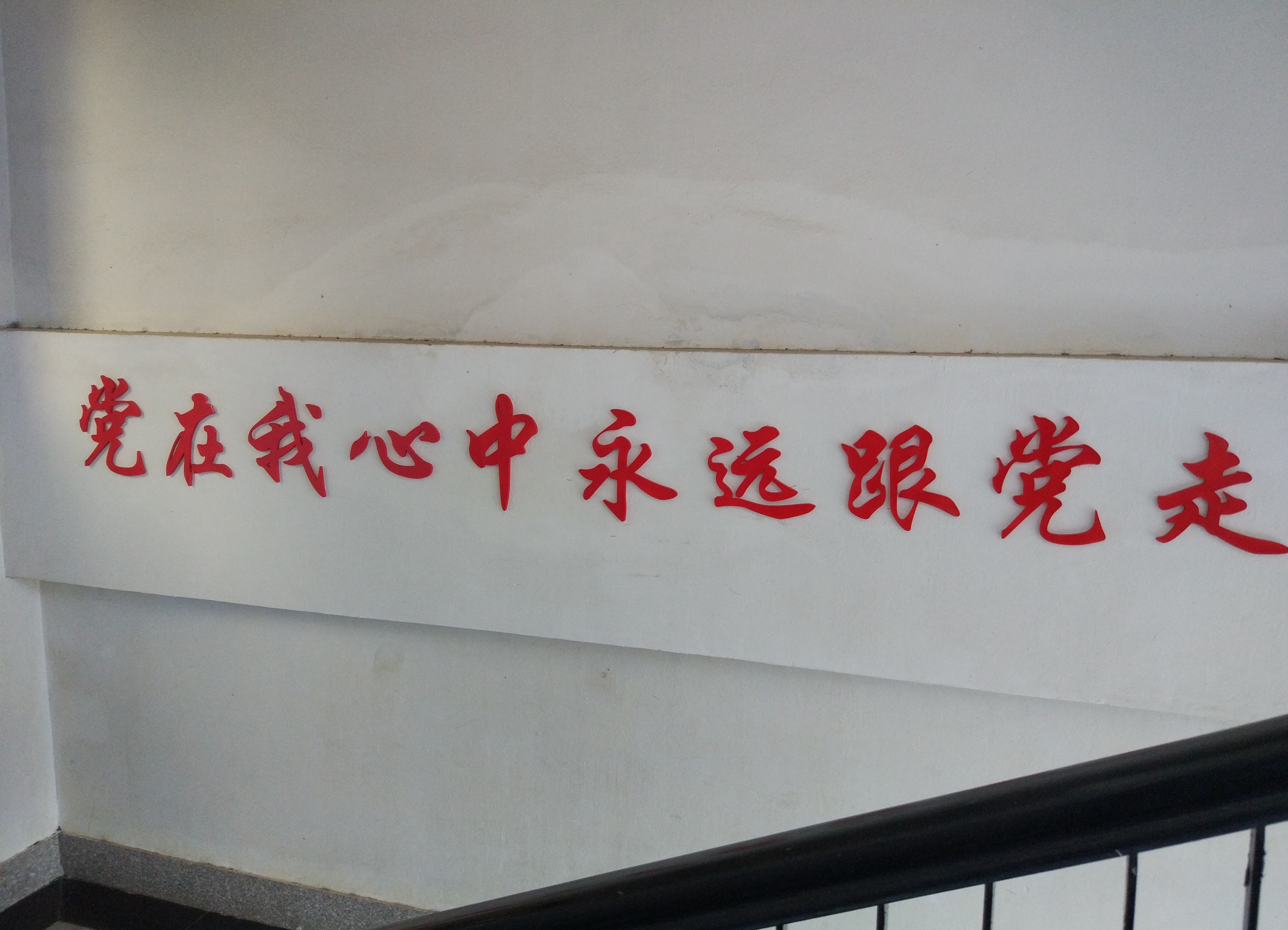 党建示范楼梯(二) 活动前期,由市场营销系学生党支部安排支部党员测量党建示范楼梯的尺寸和确定图案,并拟定《市场营销系学生党支部开展布置“党建示范楼梯”活动策划书》。与此同时,做好活动分工及物料准备工作,确保各个流程顺利进行。活动中期,跟进活动进度,做好拍照宣传工作,在支部微博上进行展示。活动后期,召集负责人员,进行活动资料整理,及时存档。