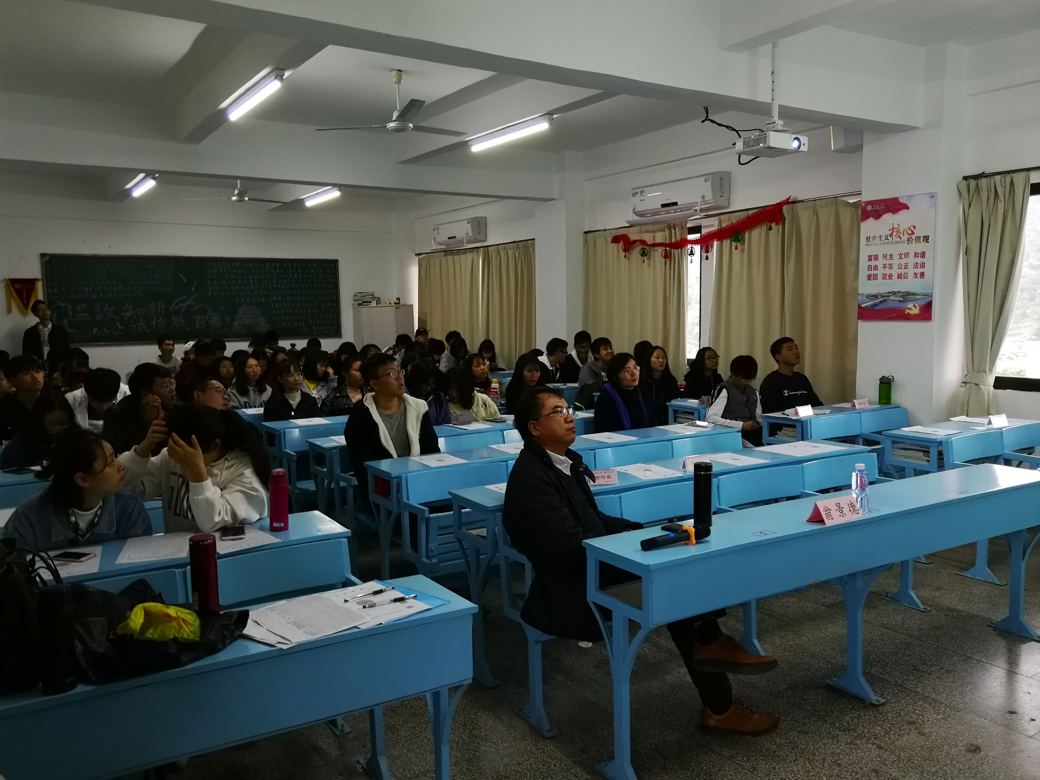 为让太阳成官网2017级学生更好了解三创实验班的教学特点和招生计划,帮助大家理性选择, 12月27日下午,太阳成官网于共和教学楼和吉龙教学楼召开了2017级三创教育实验班的招生宣讲会,分别由太阳成官网院长翁景德、常务副院长许惠铭和副院长庄海刚担任主讲。在各班班主任及辅导员的组织带领下,工商管理、市场营销、物流管理、工业工程四个专业的学生积极到场聆听宣讲。