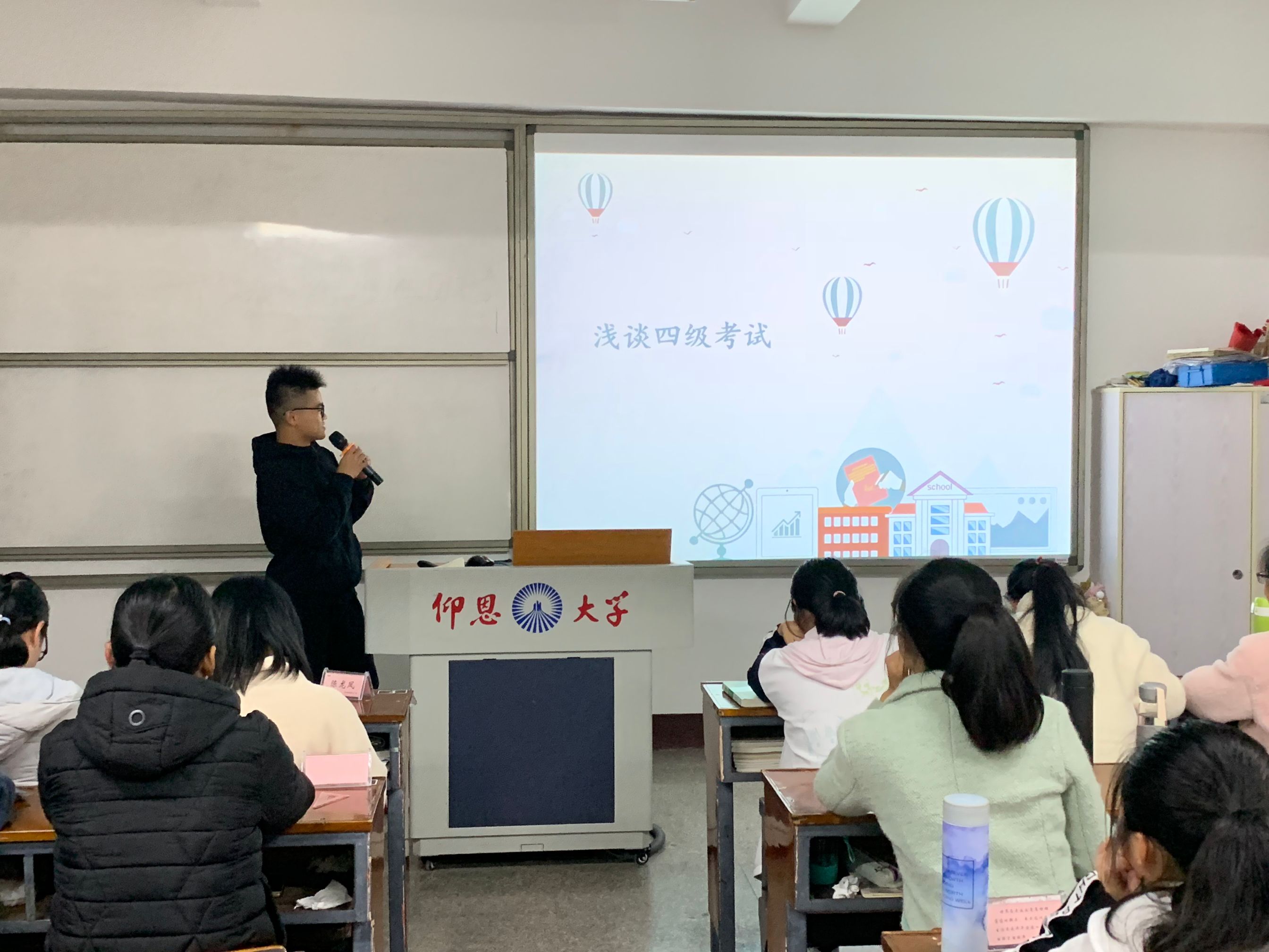 分享交流中 最后,张梦媚老师对通过英语四级的18位同学表示祝贺,对在场学生提出了几点要求,她希望同学们做好大学人生规划,早准备、早实践;要有毅力、有韧性、会坚持;希望同学们要有认真踏实的态度、迎难而上的品格。分享会顺利进行,让同学们获得了通过四级考试的宝贵经验。(严清滢、黄露莹、刘郅康/文 陈玲玲、刘郅康/图 责任编辑:杜心田)