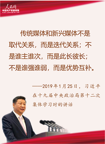 编者按:最新出版的《求是》杂志第6期发表了习近平总书记的重要文章《加快推动媒体融合发展 构建全媒体传播格局》(2019年1月25日在十九届中央政治局第十二次集体学习时的讲话)。习近平从深刻认识全媒体时代的挑战和机遇、全面把握媒体融合发展的趋势和规律及推动媒体融合向纵深发展等三方面对加快推动媒体融合发展进行了重要论述。新时代学习工作室摘取其中的精彩“金句”,供读者朋友们学习。
