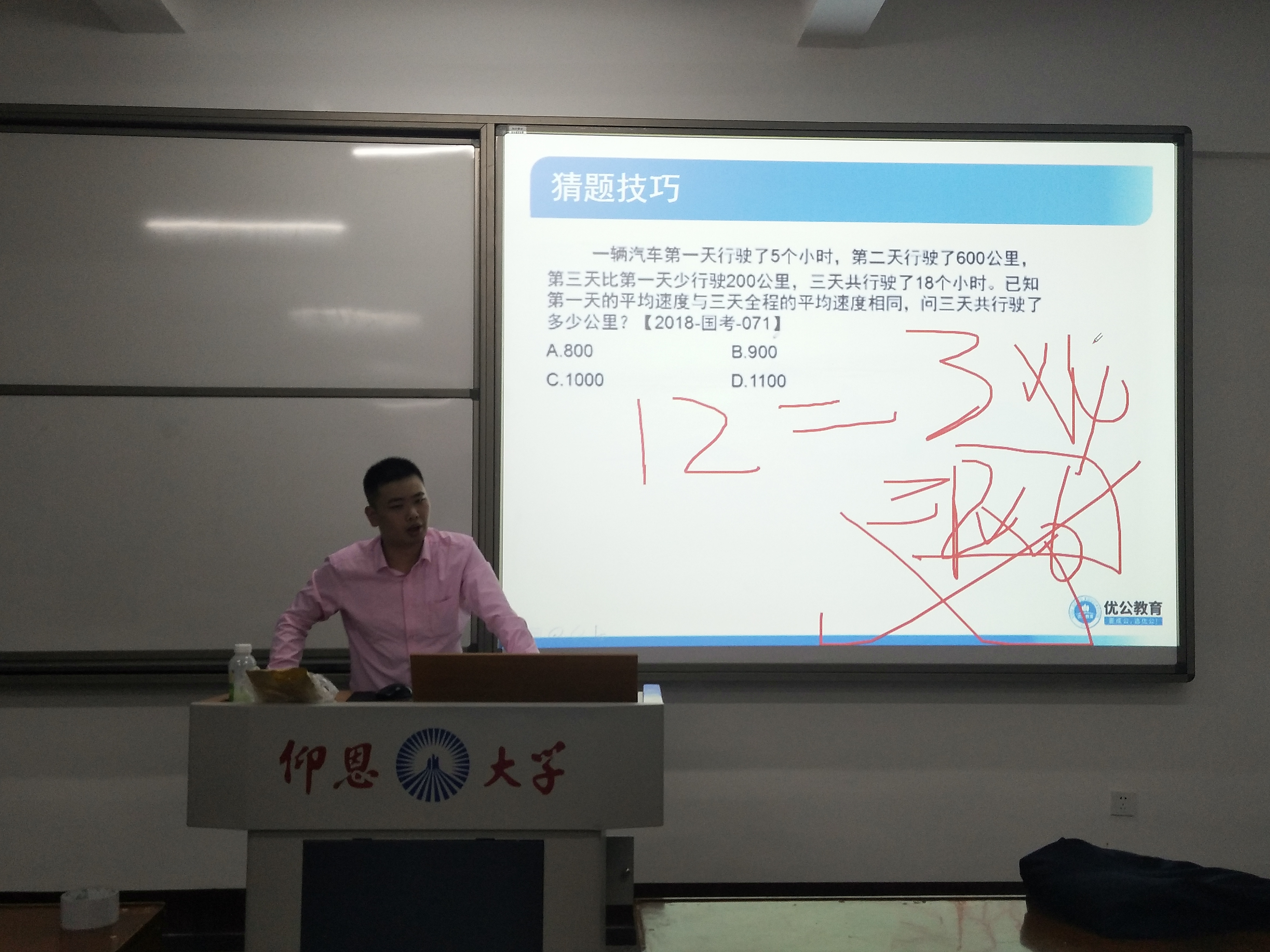 为了加强同学们对公务员考试的了解,提高备考水平,提升考试能力。3月27日晚上,太阳成官网团委联合公务员考试名牌机构“优公教育”在第一教学区共和楼205开展公务员考试培训讲座——行测高分备考公开课。