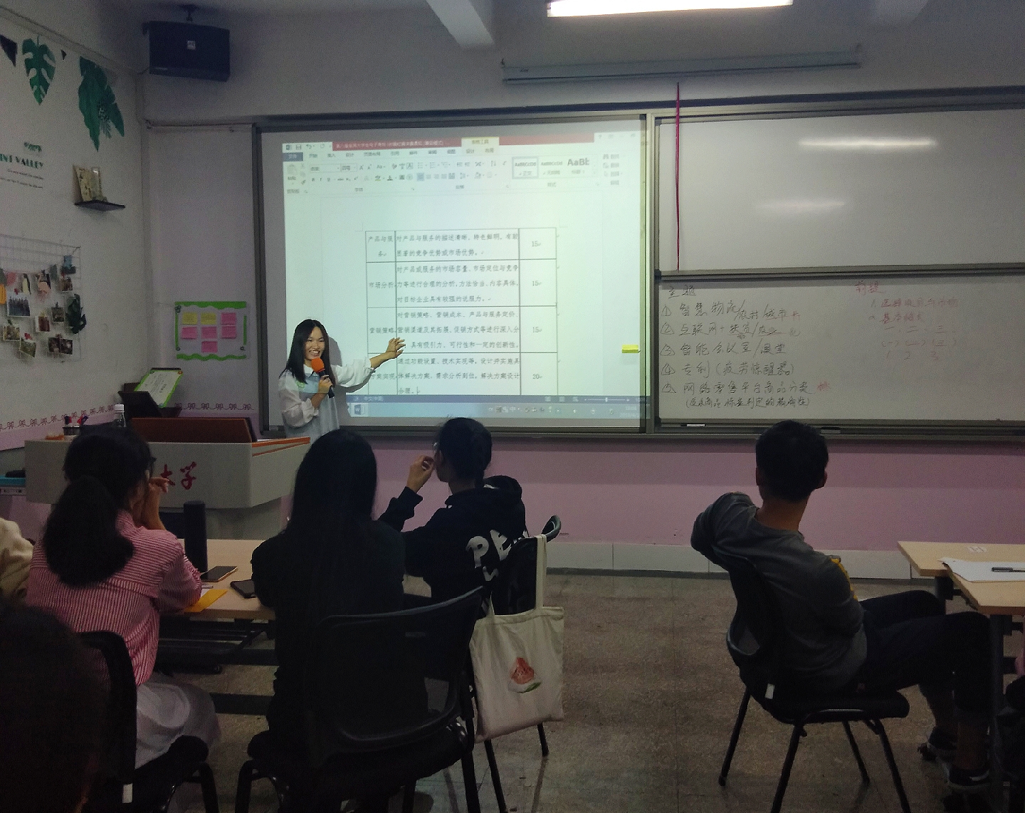 讲课现场 首先,刘嘉敏提出智慧物流、互联网+扶贫、智能会议室、专利(疲劳惊醒器)、网络零售平台的商品分类(追求商品标签判定的精准性方向)五个策划方向,20名会员抽签平均分成四组各自选择自己的主题。接下来,刘嘉敏就比赛策划书各级标题写作格式、前言的书写、市场分析和商业模式四个方面展开讲述。其中,她详细介绍了如何定位目标市场和运用PEST、SWOT、波特五力模型三种基本分析方法。同时,她要求各个小组结合讲授的内容对所选择的项目进行分析和策划,然后对小组代表的发言汇报进行点评。