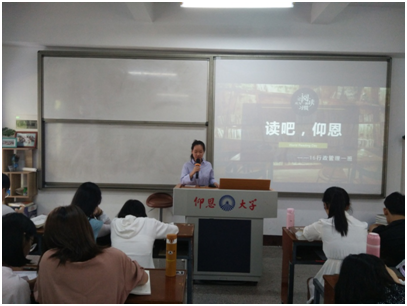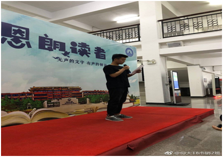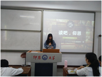 美文或诗歌朗诵 此次活动的内容主要可分为三项:好书推荐、美文或诗歌朗诵及国学经典朗读。各班读书指导员积极组织班级同学举办读书分享会,以PPT的形式推荐好书,分享读书感悟,介绍书本里的经典语录,精彩桥段,激发班级同学的阅读兴趣,带领班级同学遨游在书的海洋之中;带领班级同学到图书馆进行美文或诗歌朗诵,让班级同学静下心来,抛开烦恼,欣赏美文,领略风采;领导班级同学诵读国学经典,同学们热情饱满,大声朗读,在共和楼的走廊上回荡着读书声。高尔基先生曾说过书籍是人类进步的阶梯,有了知识的武装和储备,我们才能不断的向前进步。“万般皆下品,惟有读书高。”读书就是这样,一步一步,走在时代进步的阶梯上。通过读书,我们承前启后,总结过往,认识人性,洞明世事,再开启新篇。
