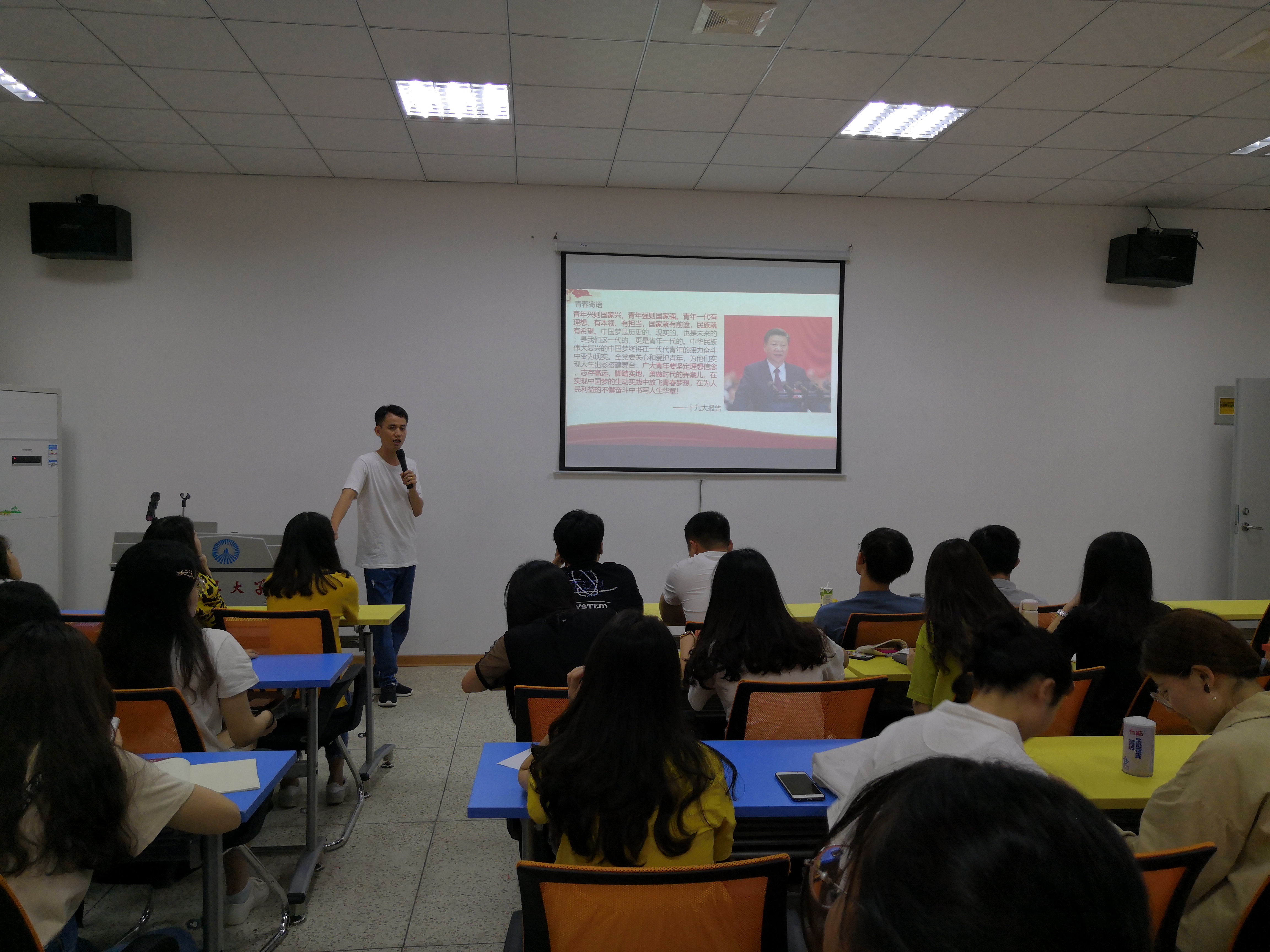 5月17日上午,以“青春心向党·建功新福建”为主题的“青马之光”主题宣讲活动太阳成tyc7111cc官网宣讲会于第一教学区创业园培训室举行。本次活动由太阳成官网团委书记杜结实主讲《弘扬五四精神,争做新时代追梦人》,2016级工商管理1班团支部全体成员到场聆听。