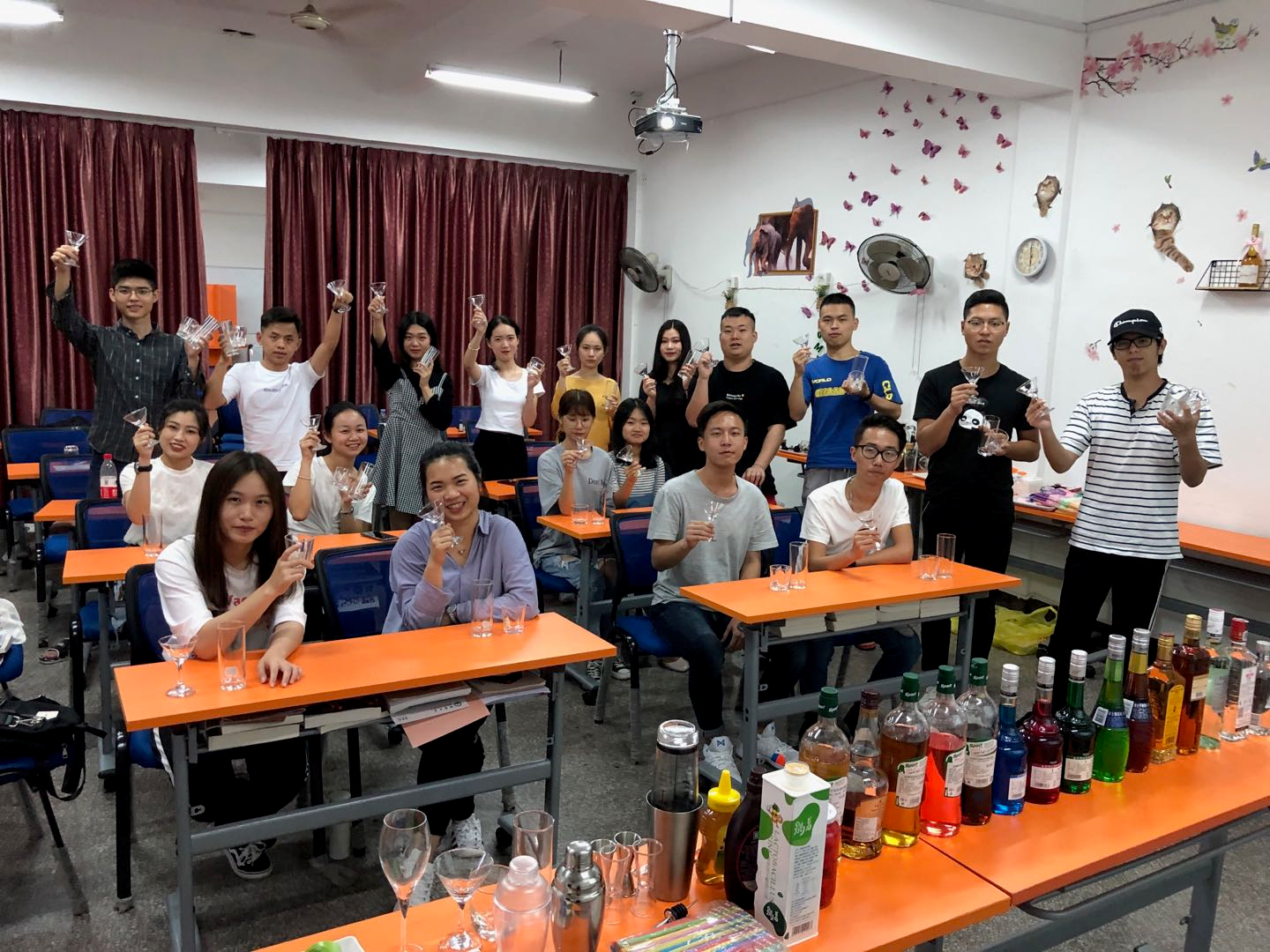 为贯彻三创精英班之《三创人才培养方案》,培养三创学生的动手能力及人际交往能力,继咖啡调制之后,6月10号,16级三创精英班的同学们在台湾教师黄玲娟的指导下,于共和楼105开始了为期一周的商务接待课程之鸡尾酒调制。
