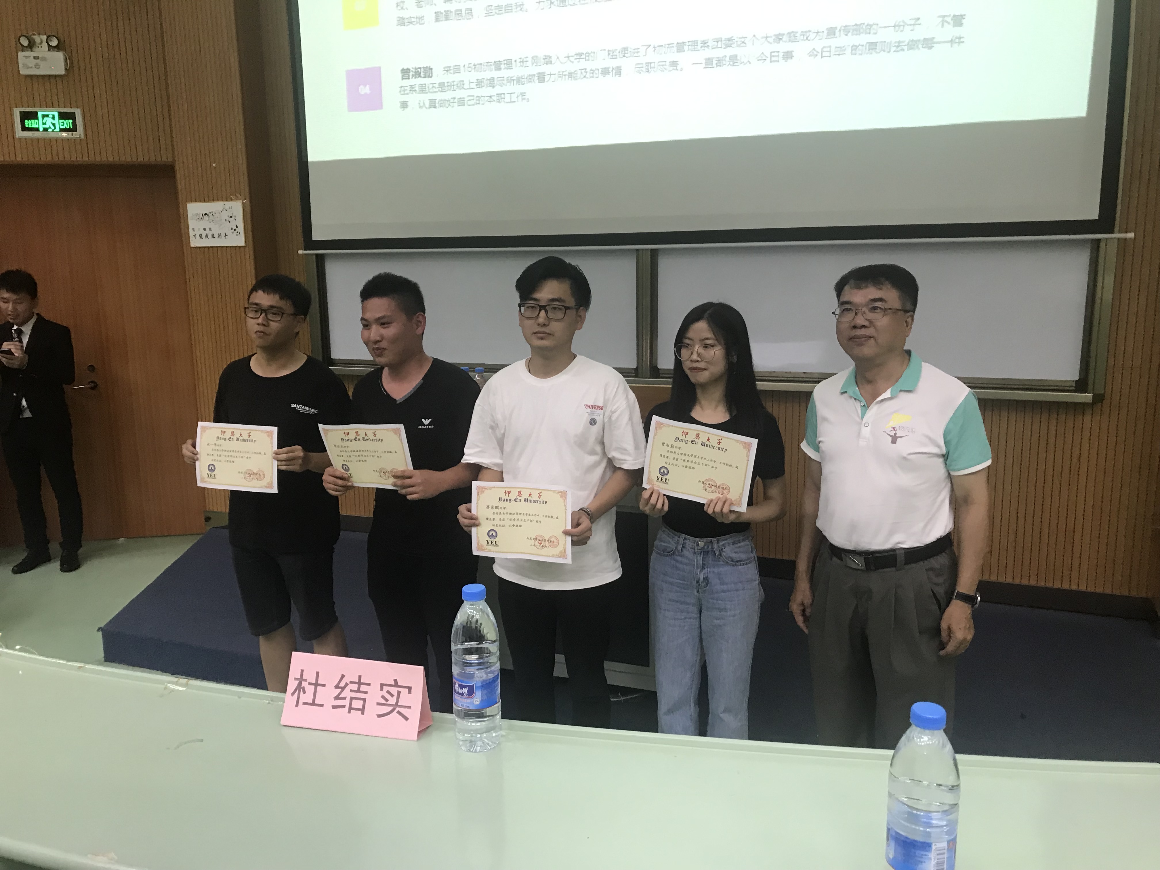 表彰环节 紧接着的是表彰环节,对系上的“优秀共产党员”、“学习强国”学习标兵和“优秀毕业生班干部”进行了表彰。荣获物流管理系学生党支部优秀共产党员称号的分别是:谢敏霞、徐彬钦、李诗烽、董春燕四位同志,她们都能很好地发挥党员先锋模范作用,不管是在思想上还是组织上都始终向党组织看齐,不忘初心,砥砺前行。龚江玮、陈晓晖、林佳佳三位同志荣获“学习强国”学习标兵称号,这三位同志勤学习,爱学习,把“学习强国”当成“指尖加油站”,积极登录“学习强国”APP进行学习,为其他同志树立了良好的学习榜样。林一伟、陈云龙、蔡家麒、曾淑勤四位同学荣获优秀毕业生班干部称号,作为班干部他们在班级各司其职,为班集体奉献自己,值得表扬。