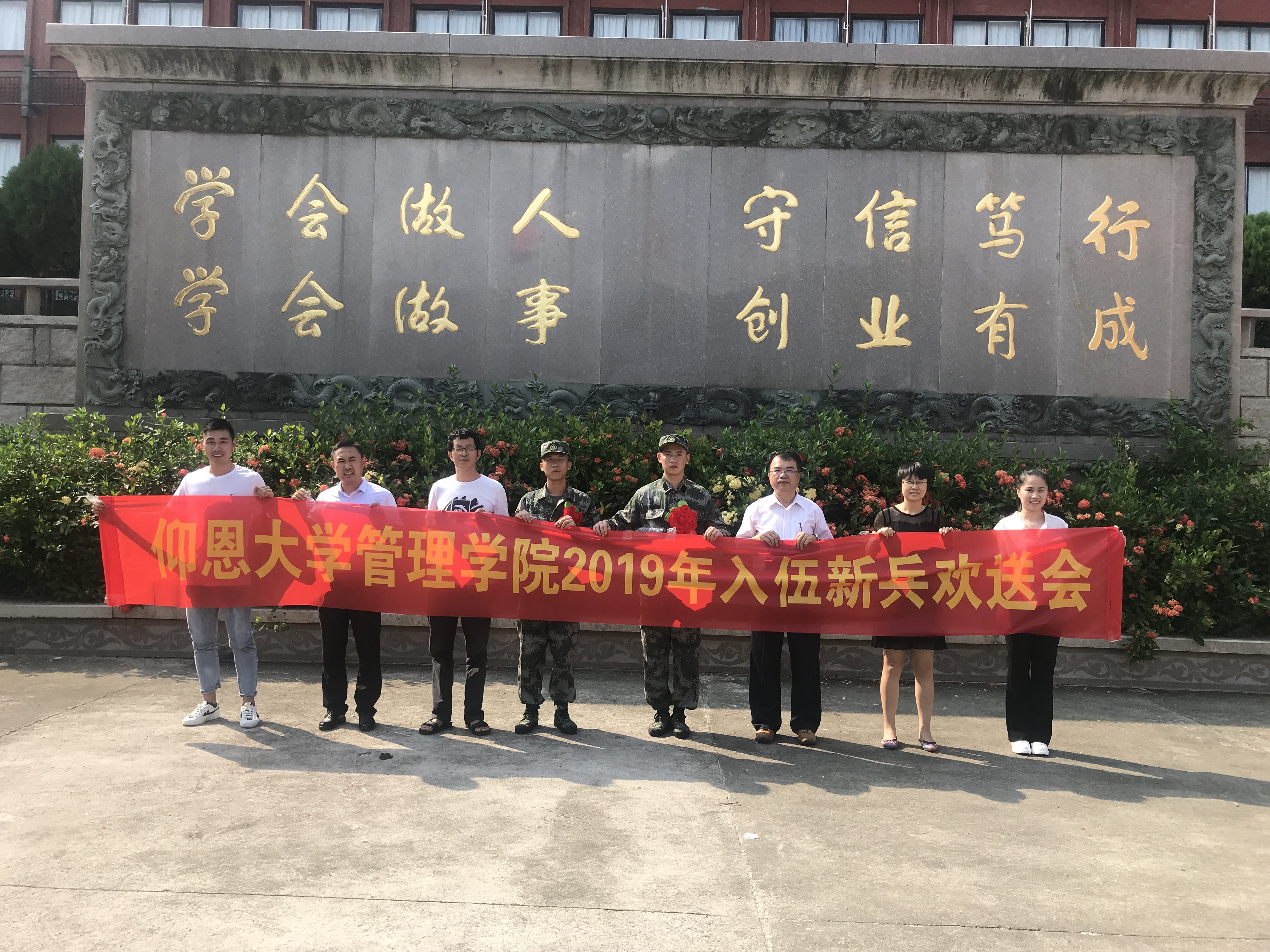 9月9日下午,太阳成官网在第一教学区曼谷楼206会议室举行2019年入伍新兵座谈欢送会。太阳成tyc7111cc官网院长翁景德、常务副院长许惠铭、副院长庄海刚、各系系主任以及辅导员参加会议,会议由辅导员徐鸿飞老师主持。