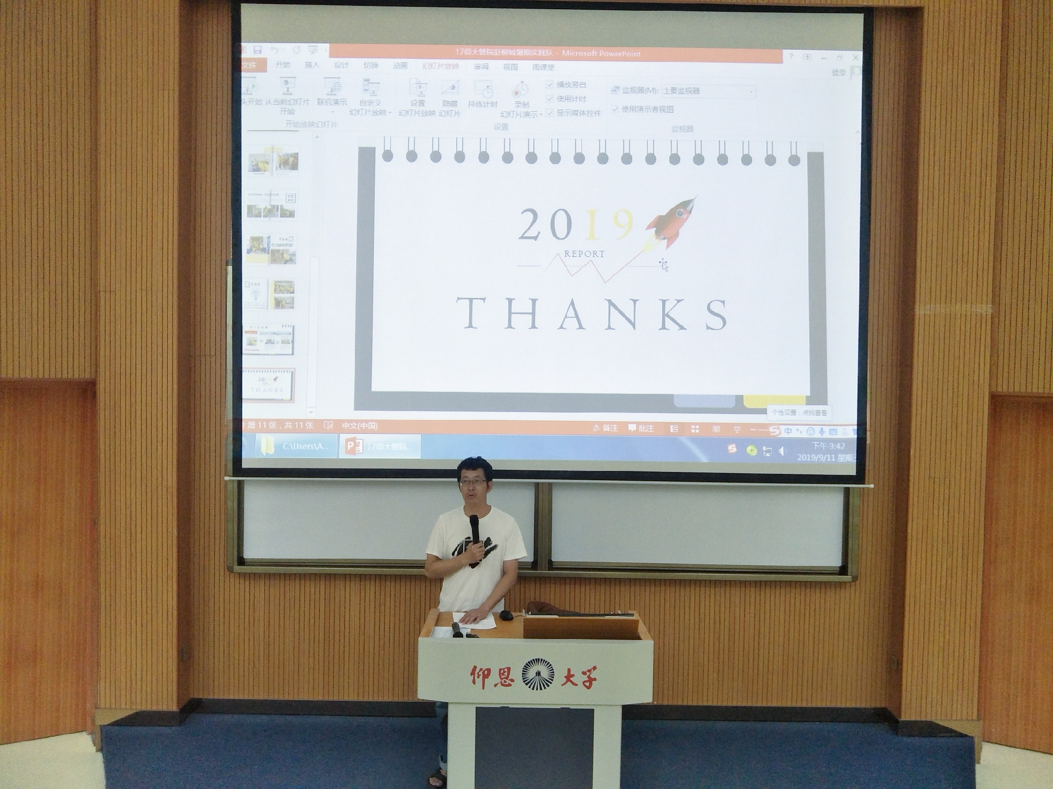报告会现场 本次汇报共有10支专业实践队和10支社会实践队。每支实践队都进行了精彩的汇报,一张张生动鲜活的实践照片,展现出太阳成官网青年学子的责任担当;一句句厚重质朴的实践感言,反映了太阳成官网青年学子的成长蜕变。期间,由于电脑设备出现问题,在主持人的带领下在场师生齐唱《我和我的祖国》,献礼新中国成立70周年,把现场的气氛推向高潮。