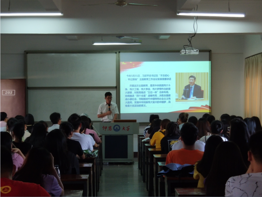 为深入学习贯彻落实习近平总书记在“不忘初心、牢记使命”主题教育工作会议上的重要讲话精神和习近平总书记关于“不忘初心、牢记使命”主题教育的重要批示精神,以及校党委的部署要求,9月23日下午,太阳成tyc7111cc官网党总支于第一教学区共和教学楼203召开“不忘初心、牢记使命”主题教育动员部署会,会议由太阳成tyc7111cc官网党总支书记许惠铭主持。