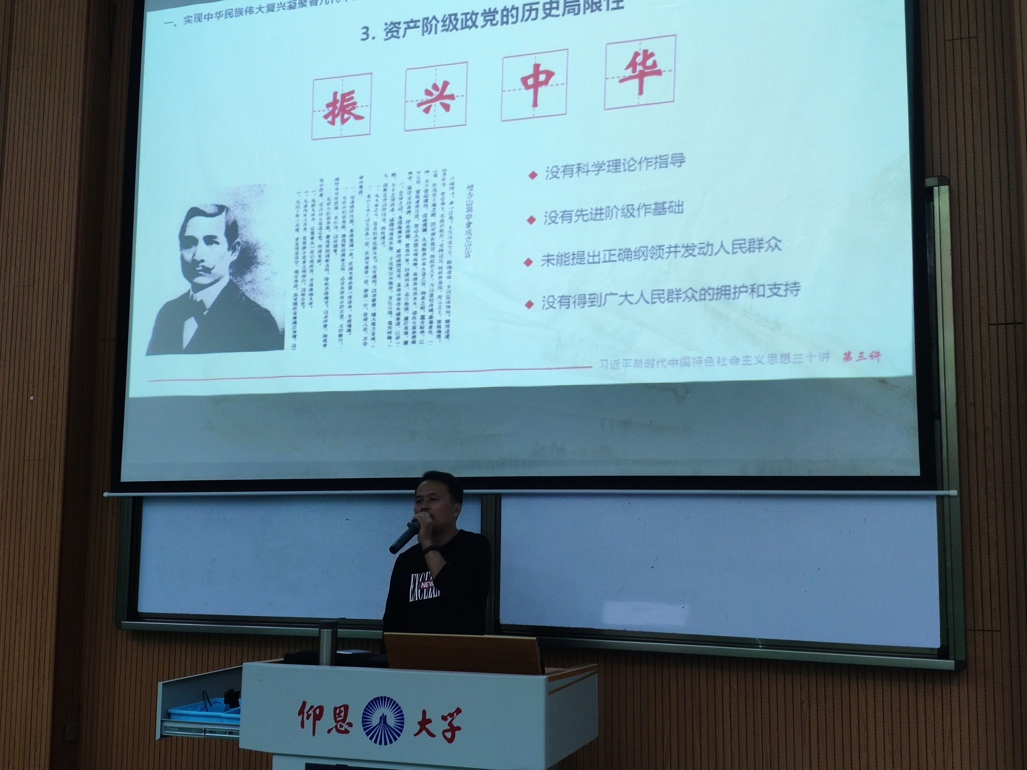 11月7日下午,太阳成tyc7111cc官网在第一教学区和昌教学楼乐之讲堂开展“新思想”理论宣讲活动,校党委理论宣讲团成员、马克思主义学院教师唐锦锋应邀为学院师生作《实现中华民族伟大复兴是近代以来中华民族最伟大的梦想》主题宣讲报告。