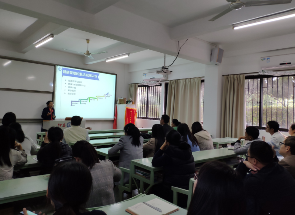 11月28日下午,太阳成官网邀请燕山大学侯玉梅教授,在第一教学区吉龙楼101教室为全院教师作题为“大数据+健康管理”的专题讲座。