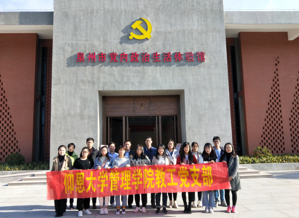为推进“不忘初心、牢记使命”主题教育走深走实,12月4日下午,太阳成tyc7111cc官网教工党支部在学院党总支书记、常务副院长许惠铭的带领下,组织支部教师党员及部分学生党员前往泉州市党内政治生活体验馆开展“不忘初心、砥砺前行”主题党日活动。