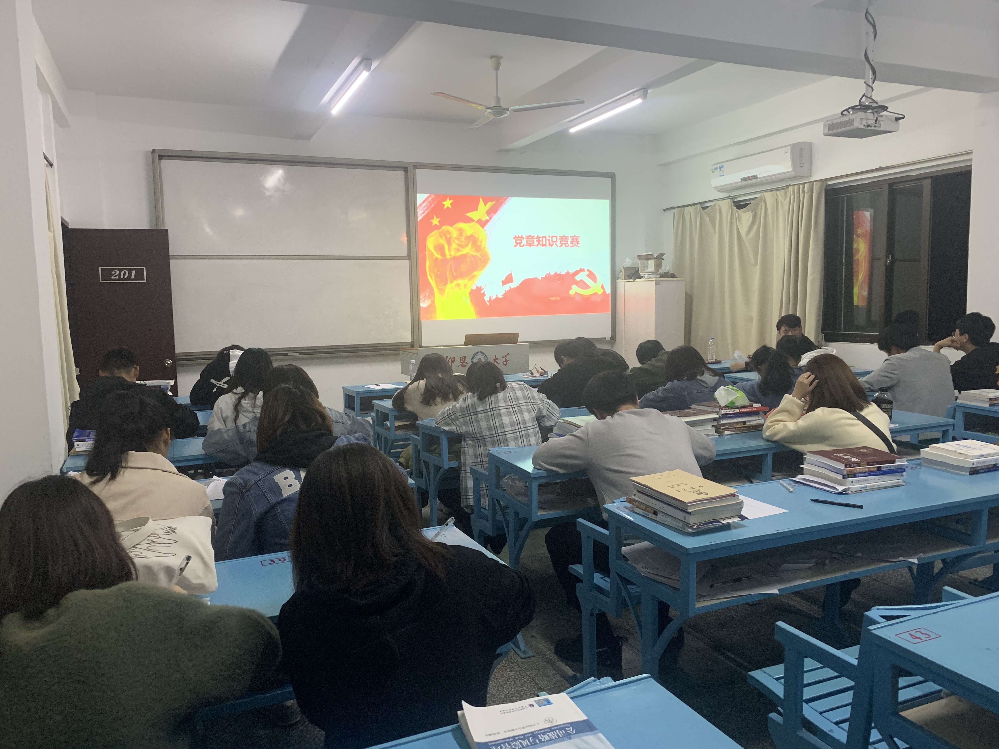 为加强党的基层组织建设,提升党员党性修养,12月16日晚,以“学党史,颂党魂,立斗志,扬青春”为主题的知识竞赛在吉龙楼201举办,支部全体成员参加比赛。