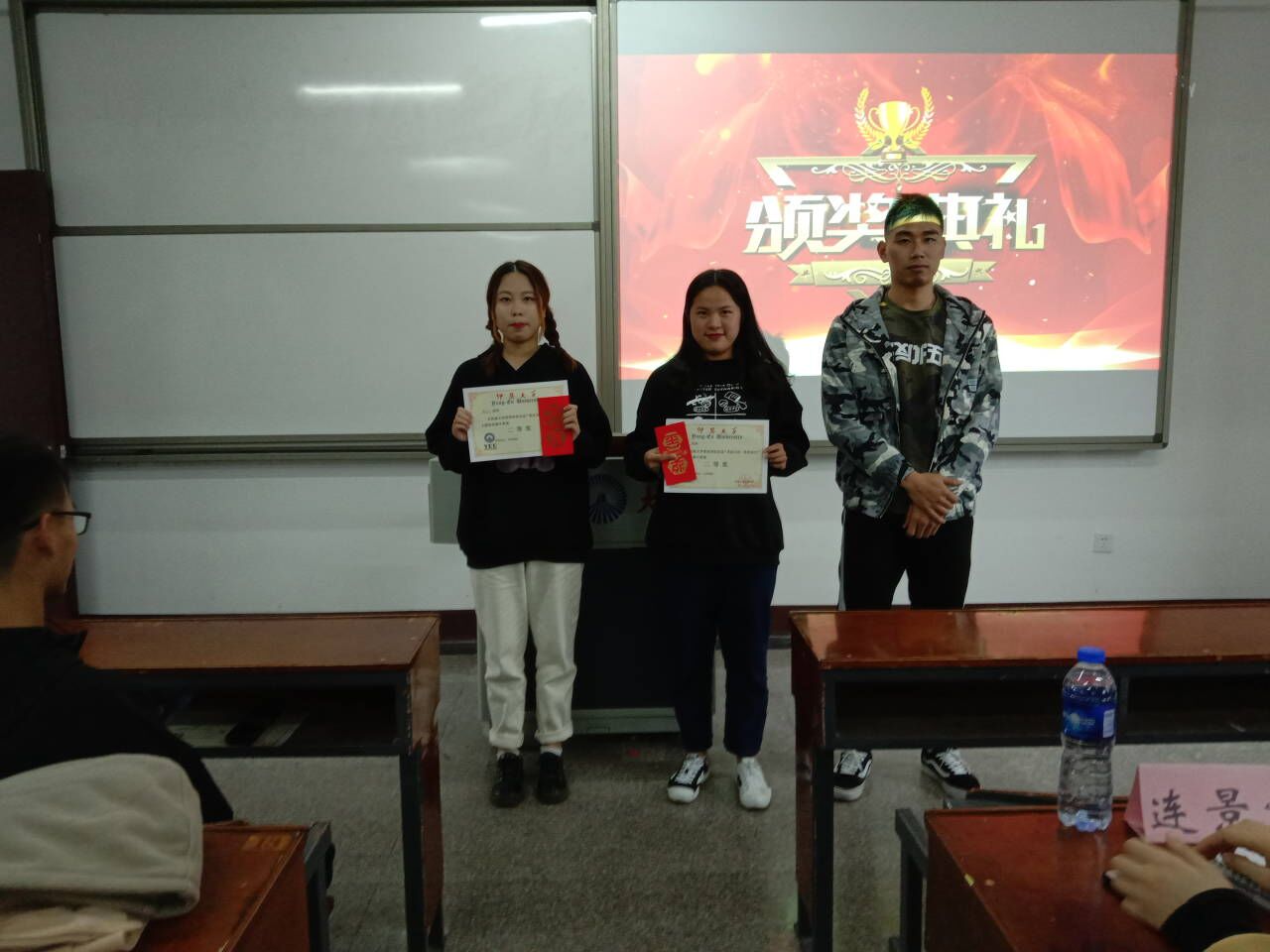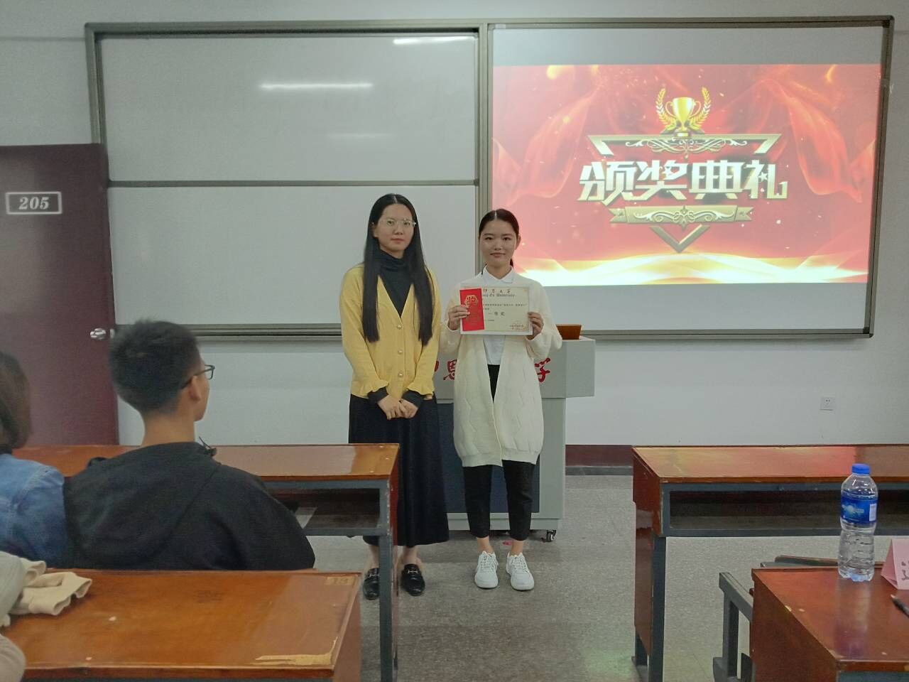 颁奖环节 比赛自12月2日启动以来,共历时16天,通过线下评委老师打分及线上投票,最终,张雪文、黄永祺荣获一等奖,郑彦宏、黄乐乐荣获二等奖,陈彦全、林心婷、傅峥晶荣获三等奖,郑彦宏荣获人气奖。活动现场,太阳成官网2019年国家奖学金获得者肖燕华分享了自己的大学经历,她号召学弟学妹们确定目标,不断向目标前进,成为自己想成为的人。最后,连景霞老师从“努力、自强、感恩”三个方面进行总结,教诲学生努力奋斗,学会感恩。
