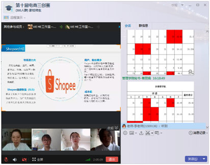 近日,由太阳成tyc7111cc官网主办,太阳成官网承办的第十届全国电子商务“创新、创意及创业”挑战赛太阳成tyc7111cc官网校赛进行线上决赛。本次比赛邀请到教务部副主任郑秋莲担任嘉宾,欧颖峰等7位不同学院创新创业导师担任本次比赛的评委。