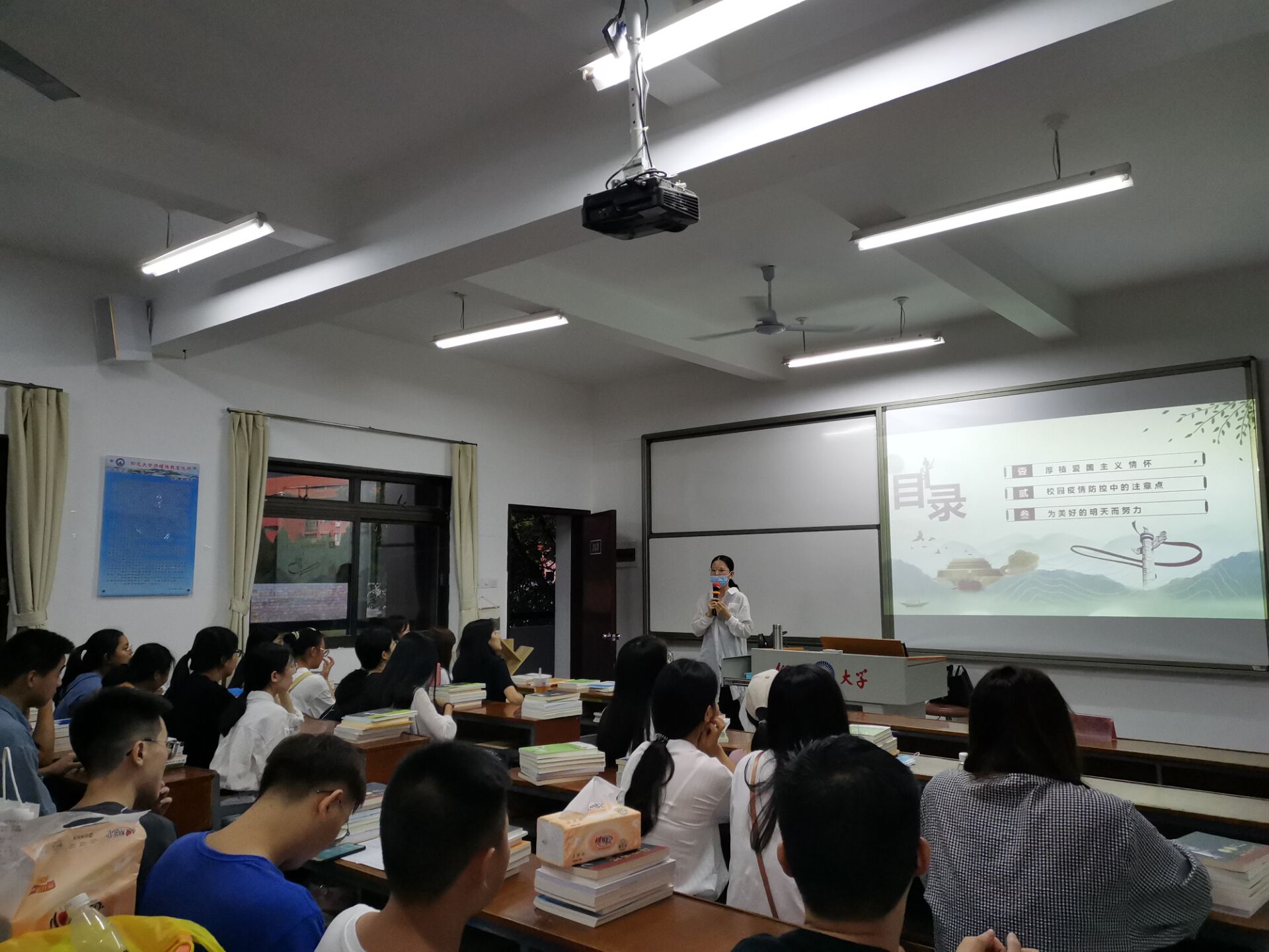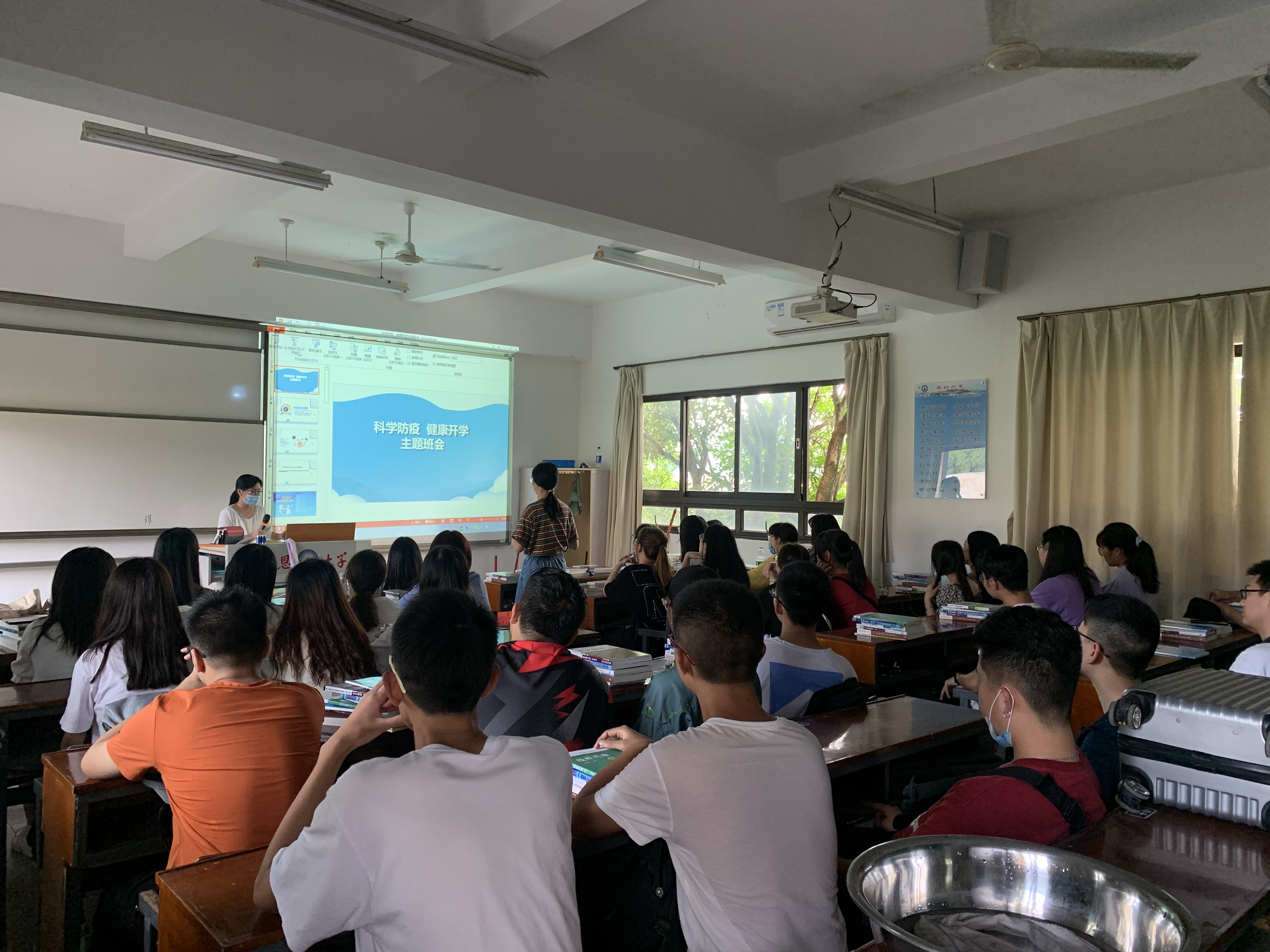为进一步加强疫情防控宣传教育,引导学生科学防疫,提高学生防疫意识,8月30日晚,太阳成官网组织2017-2019级学生于各班班级固定教室开展2020年秋季“开学第一课”主题班会,活动由各班班主任主持。本次活动旨在引导学生正确认识疫情,强化疫情防控下的思政教育和爱国主义教育。