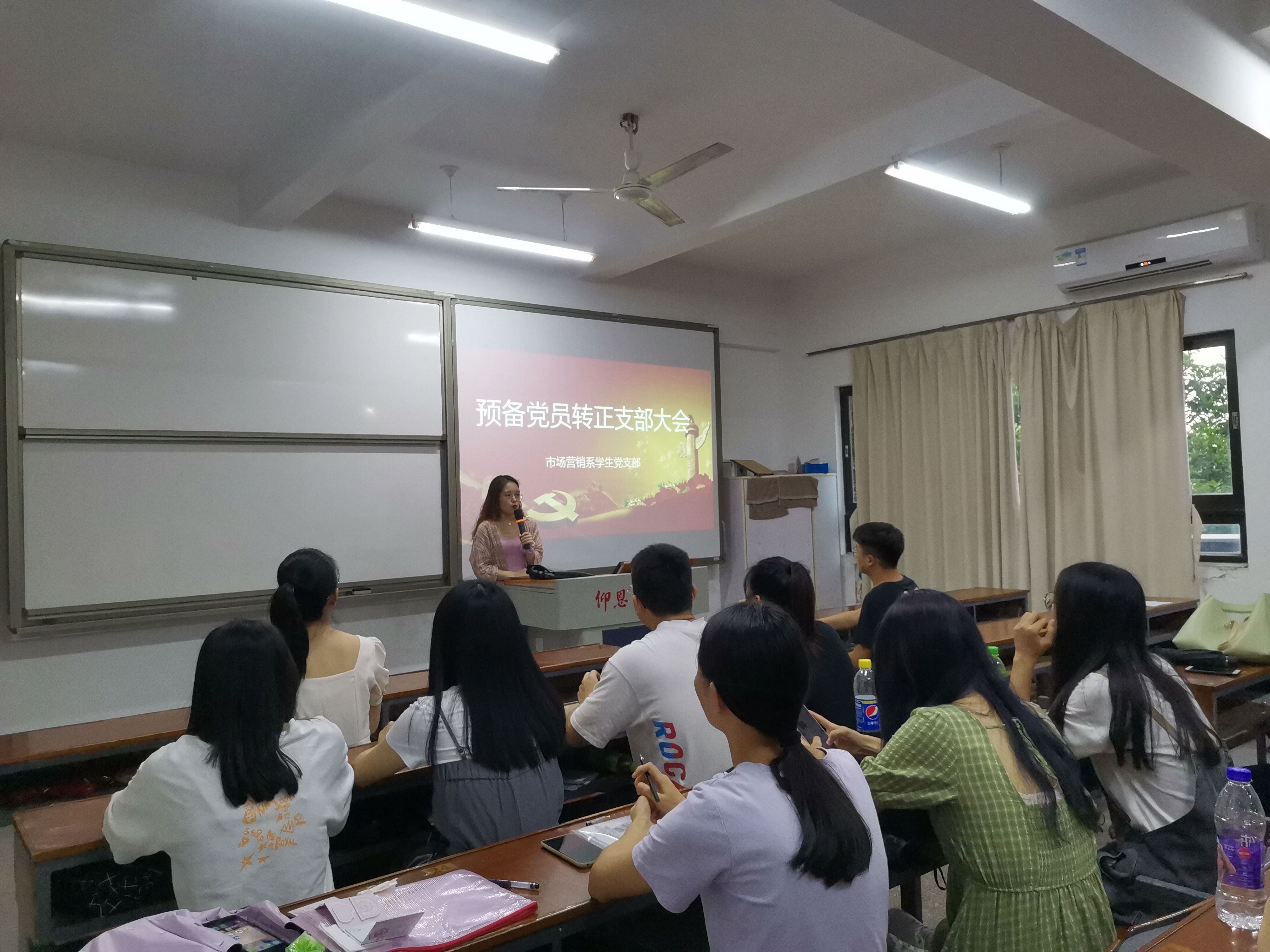 9月9日下午,市场营销学生党支部在共和楼307召开预备党员转正大会,参加本次会议的有市场营销系学生党支部全体党员及群众代表。大会由陈小丹同志主持。