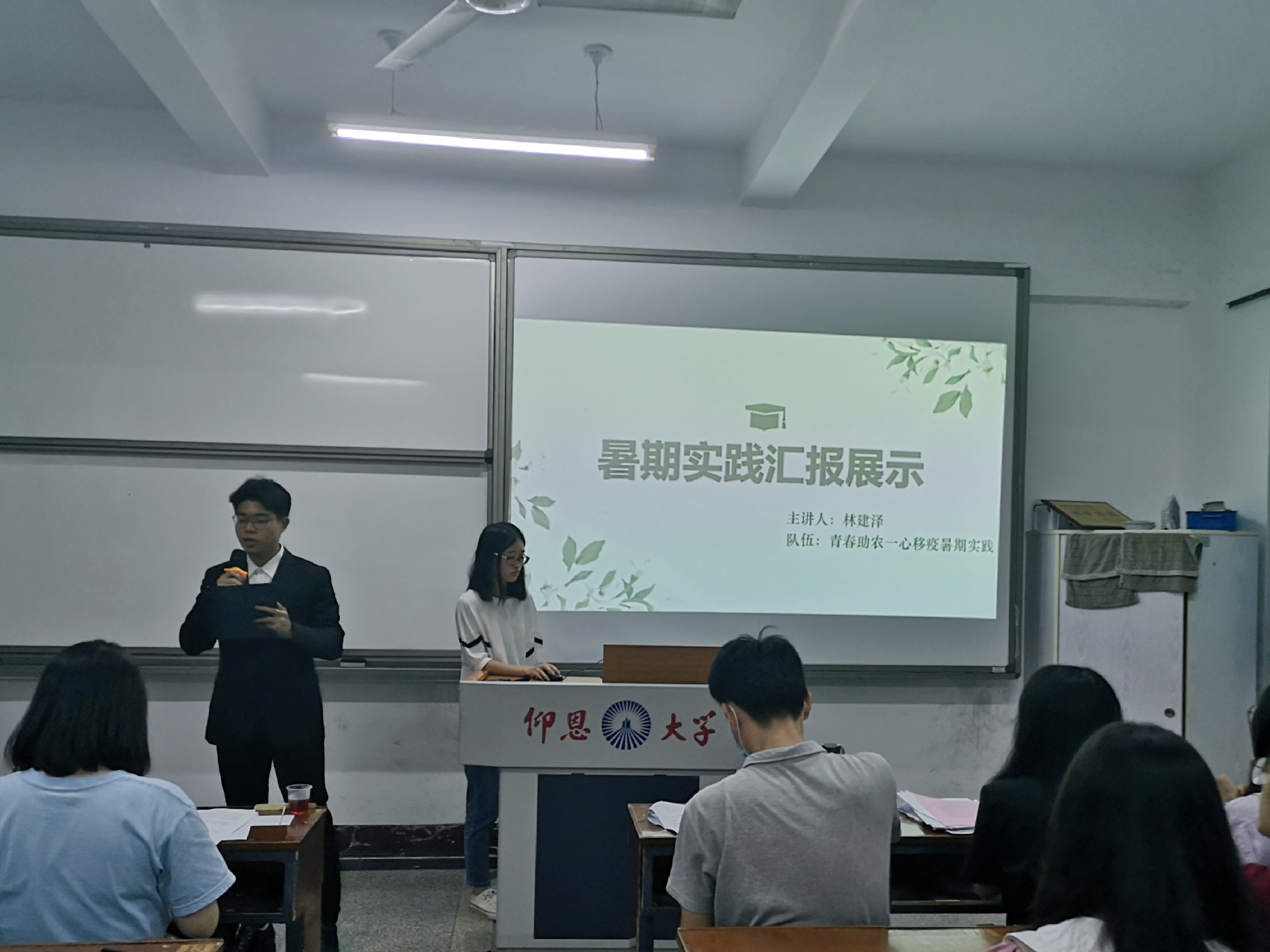 队伍汇报展示 管院学子用行动证明一切,展现风采。“赴漳州龙海实践队”进行返乡调查,关注基层民生民情,通过走访,体验家乡的新变化,围绕家乡经济发展,疫情防控,复工复产等,开展走访调研。“赴福州永泰实践队”感受传承千年的古厝文化,重温红色革命的经典。“赴莆田新墩暑期实践队”开展爱心支教活动和基础课程教育,充分体现病毒会被隔离但温暖不会被隔离。“赴龙岩连城实践队”助力复工复产,从特色文化入手,感受民俗风情,共建姑田碧水蓝天,深入基层,助力乡村振兴,积极响应国家号召。“赴三明泰宁暑期实践队”创新扶贫思路,支持电商扶贫。“疫情助农,一心移疫暑期实践队”利用专业知识制定市场调研等,拓宽线上销售,学习销售经验等,开辟线上销售渠道。“赴福建邵武暑期实践队”积极响应国家号召还有疫情防控,进行线上云实践,运用专业知识,得到公司的认可并增强实践能力。