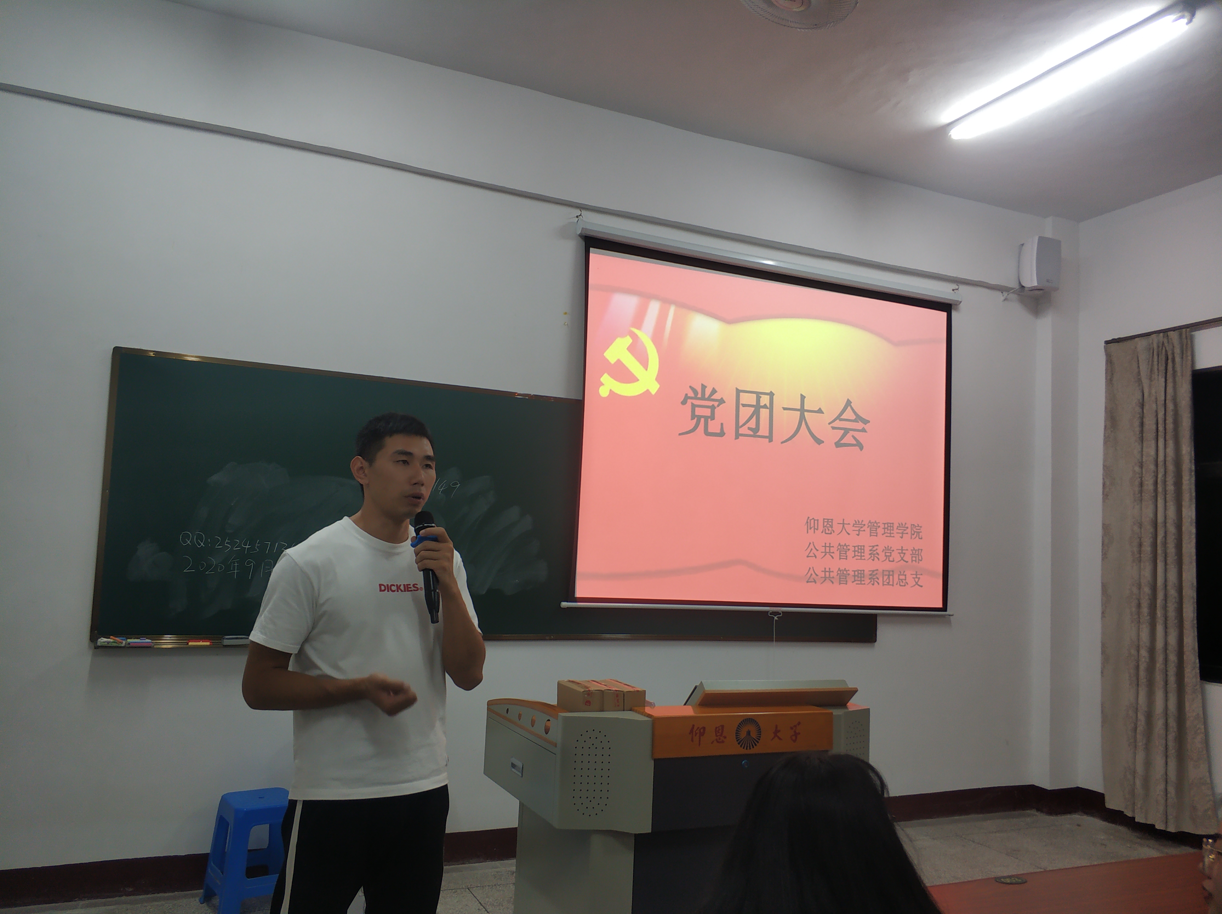 10月8日,公共管理系学生党支部于祥贤楼202召开党团大会。书记徐鸿飞以及大一全体新生参加会议。