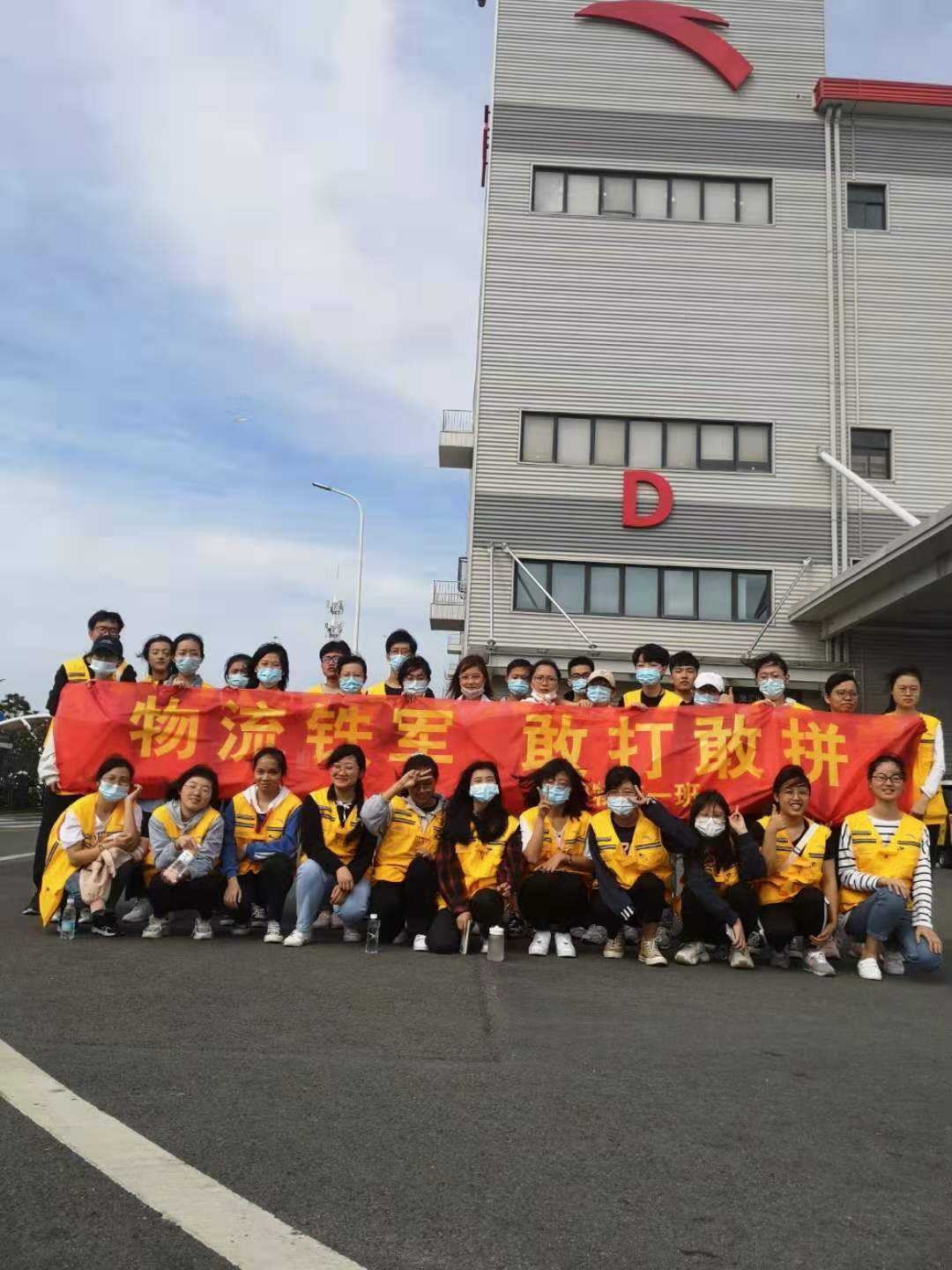 在实践期间,安踏主要负责人将同学分成“分拣、播种、复核、包装”四个工作小组,由专门的岗位师傅再次进行带队培训,待同学们了解完整个操作流程以及各自岗位的职责后便进入各自的工作岗位开始工作。在多次操作后,同学们渐入佳境。其中,李昭治、李佳晨、詹文虹这三位同学还获得了工作效率最高奖,是同学们值得学习的榜样。在此期间,为了让校企合作再次升华,物流管理系老师也对园区进行了教学观摩,与同学们一起进行分拣、播种、复核、包装等工作。在实践结束之际,2017级和2018级物流管理专业学生在安踏体育物流园区合影留念,留下大家奋斗过的足迹。