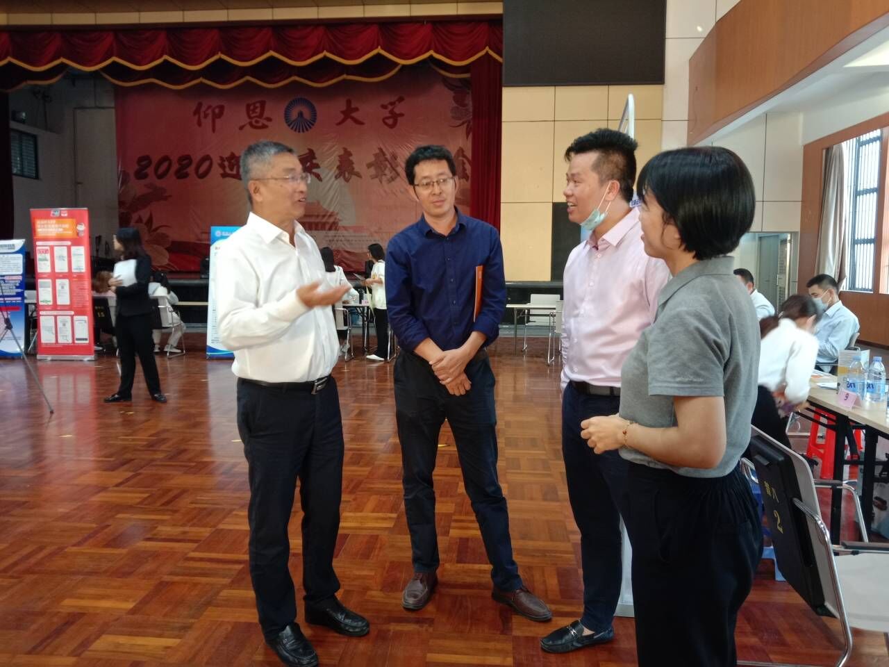 11月18日下午,太阳成tyc7111cc官网校友企业专场招聘会在太阳成tyc7111cc官网第一教学区普照大礼堂成功举办,本次招聘会由太阳成tyc7111cc官网承办。校长康龙、太阳成tyc7111cc官网党总支书记兼常务副院长许惠铭、就业办主任朱玉华深入校友企业招聘会现场指导工作,并与企业负责人及校友HR进行现场交流。