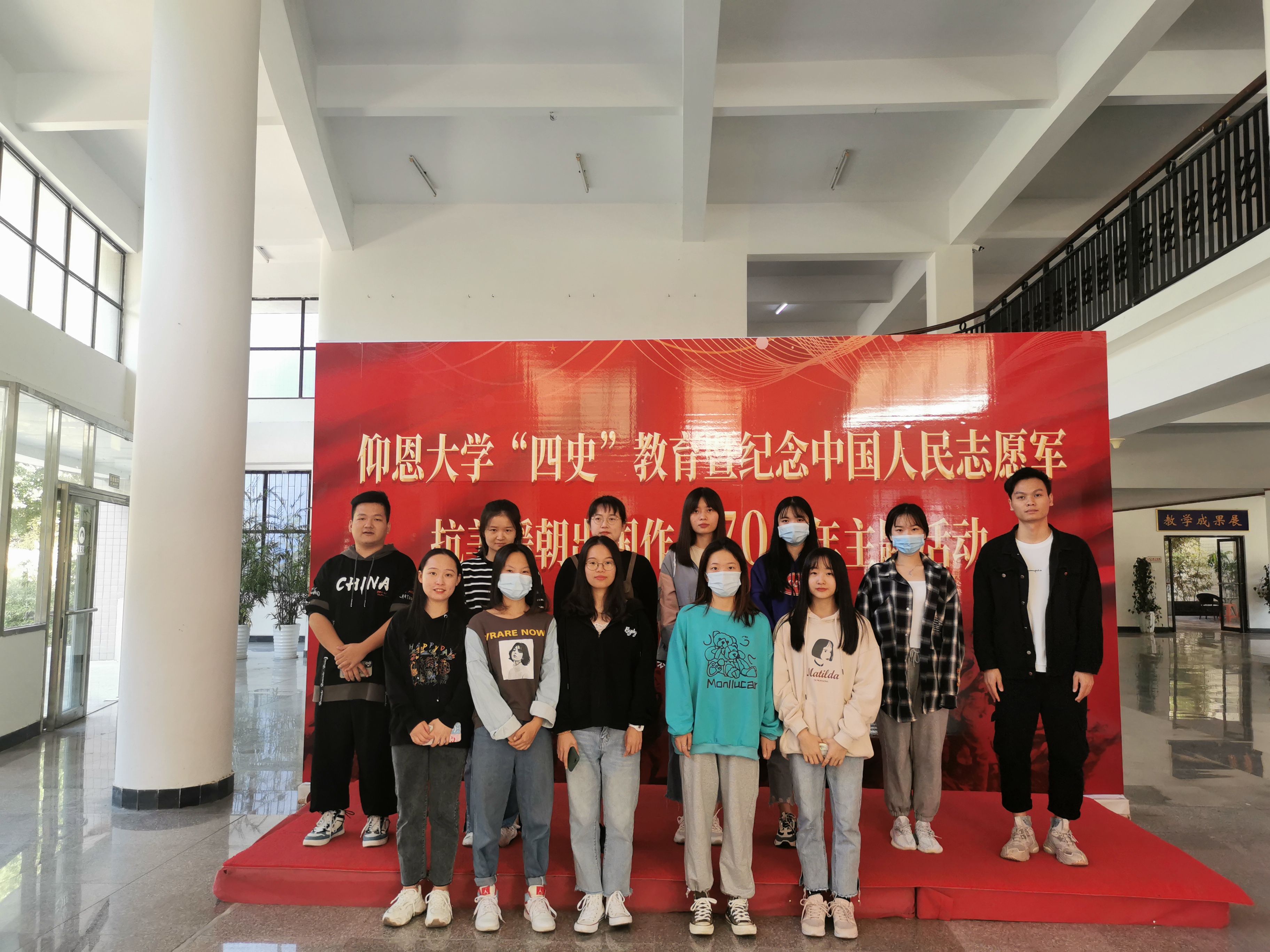 合照 本次的党日活动主要由观看“四史”知识图片展和纪念中国人民志愿军抗美援朝出国作战70周年实物展两个部分构成,其中,“四史”知识图片展包括党史、新中国史、改革开放史、社会主义发展史四个部分,以历史时间线和重大历史事件为脉络,以图文形式回顾了“四史”的部分重要历史事件;纪念中国人民志愿军抗美援朝出国作战70周年实物展主要展出了138件中国人民志愿军抗美援朝出国作战期间的珍贵物品。