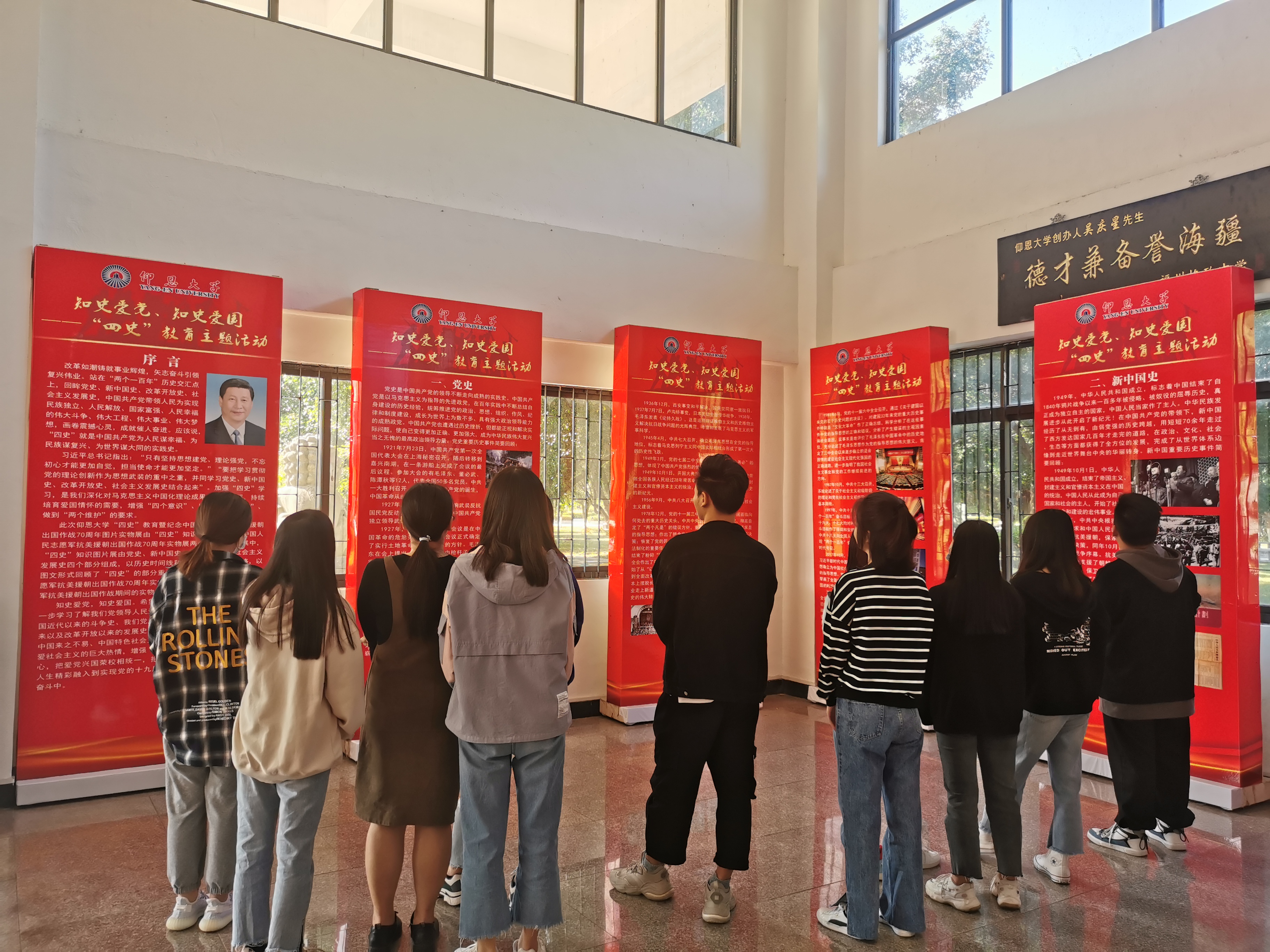 学生党员们在观展时仔细阅读展板上的文字,“四史”内容各有侧重,但整体讲的是中国共产党为人民谋幸福、为民族谋复兴、为世界谋大同的实践史,中共共产党的领导是“四史”的主线。通过观展体验,了解到我党走过的峥嵘岁月,体会到我党在革命和奋斗中的艰难历程。